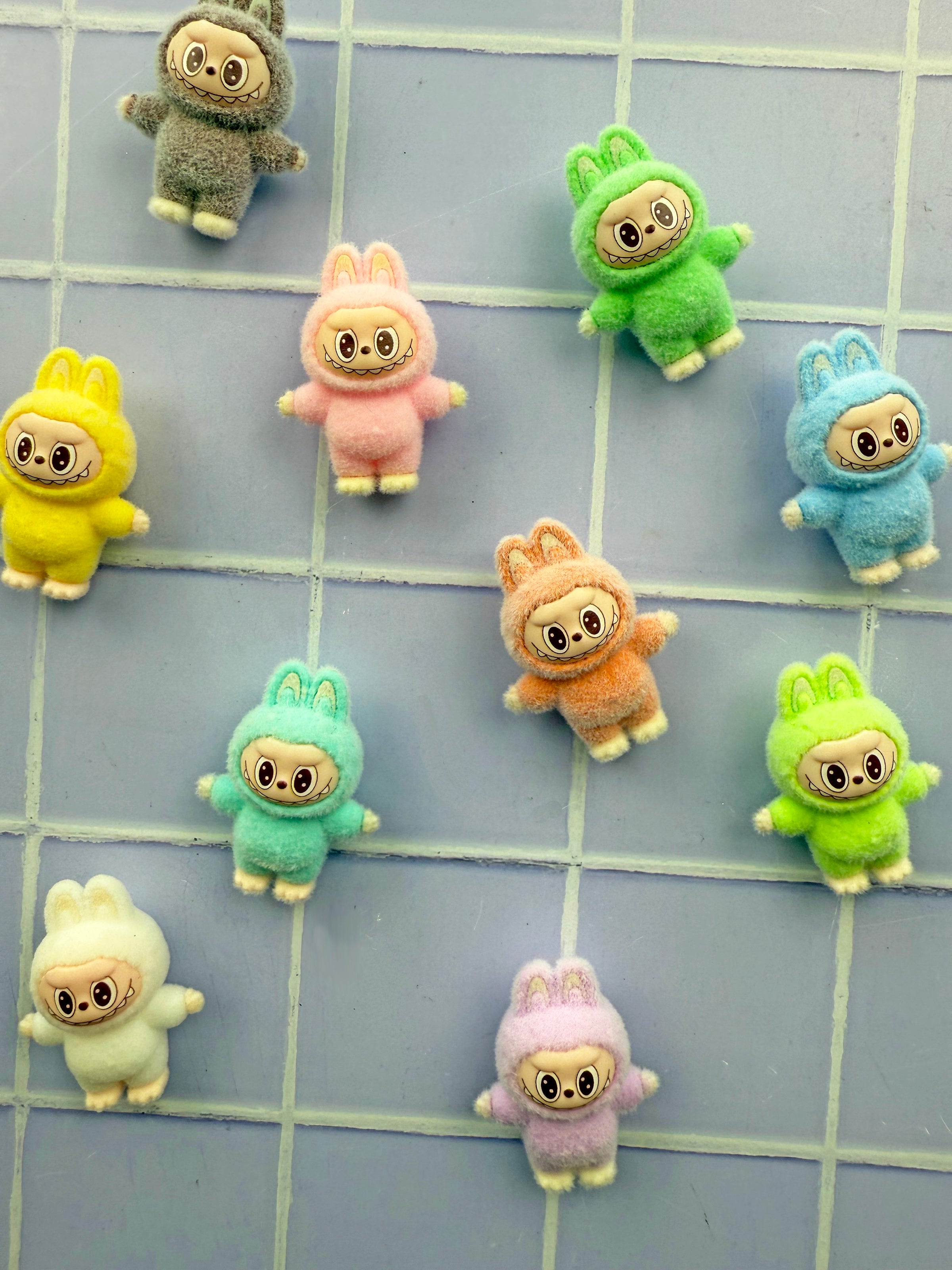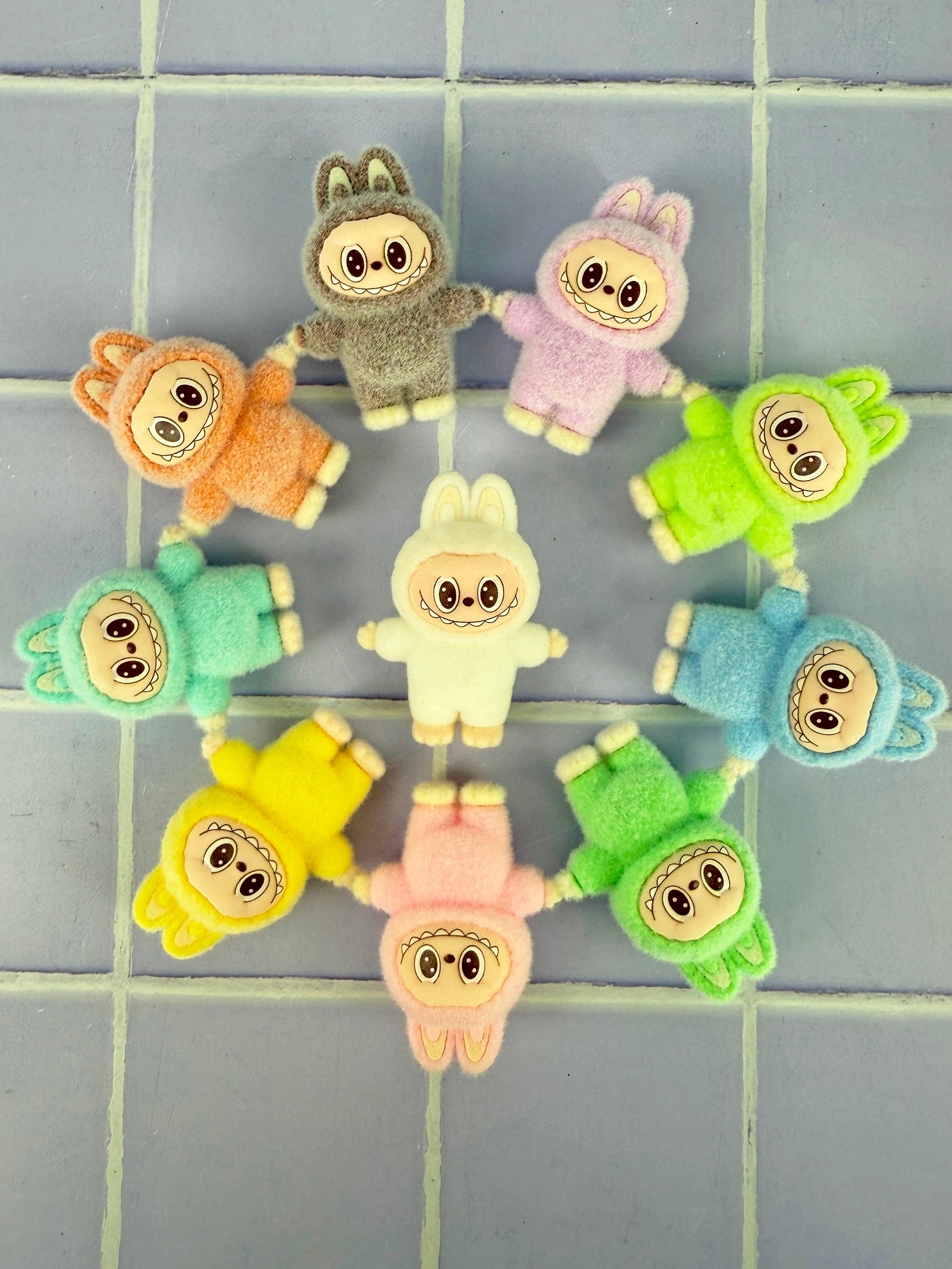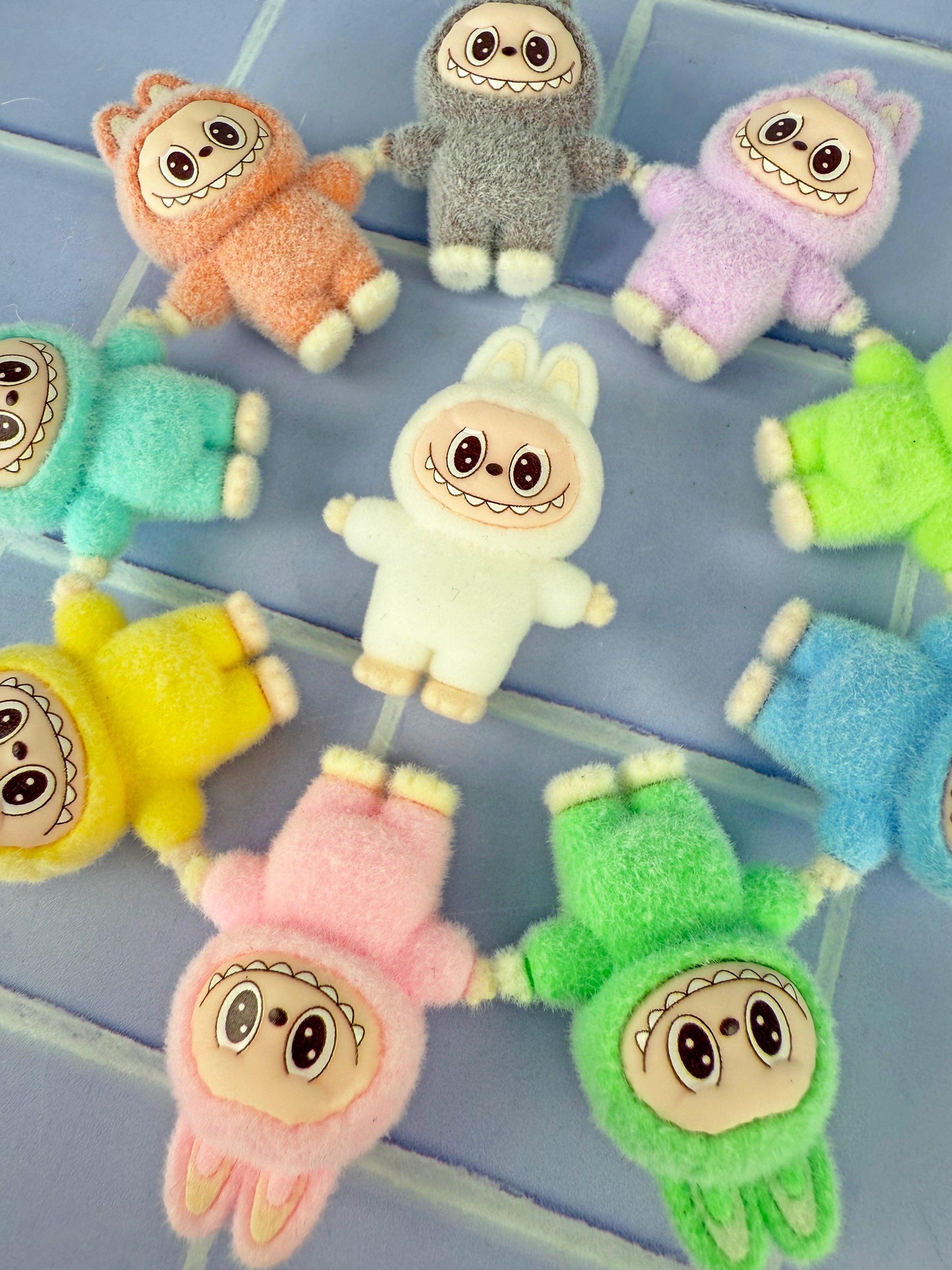 This tiny velvet critter may be small, but they’ve got big personality. Dressed in a soft bunny suit and flashing a silly little monster grin, this collectible cutie is perfectly pocket-sized and ready to tag along on your next adventure!