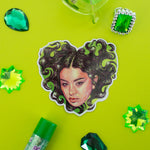 This vinyl sticker features Charli XCX inside a green holographic heart. So Brat.