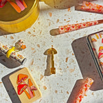 This gold tool has the cutest mushroom on the top of the handle, and fits perfectly in the bottom compartment of most grinders!