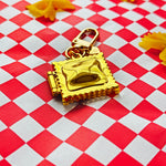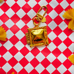 Made of gold plated zinc alloy, this ravioli has a hinge so you can keep something special inside. We recommend a square of cheese to snack on later.