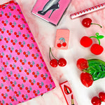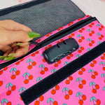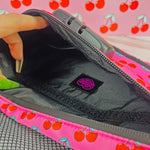 Bag is made of pvc coated canvas. Covered entirely in our chintzy cherry print!