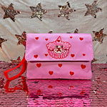 Bag is made of pvc coated canvas. This bag was made in collaboration with Linda of Creepy Gals. Design on the front is one (1) sad clown. Design on the back is three (3) clowns and the cute Creepy Gals logo.