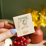 This matchbook features everyone's favorite cocktail- a (dirty) martini! The art is done by meeeee! The inside of the matchbook has the recipe for the cocktail and each match features a different ingredient of that cocktail cause we cute like that.