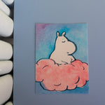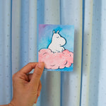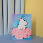 This print features Moomin sitting serenely on a pink cloud! Made by artist Rebekah Evans, this watercolor print looks adorable on a shelf and makes for the sweetest gift!