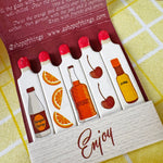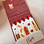 This matchbook features everyone's favorite cocktail- an old fashioned! The art is done by meeeee! The inside of the matchbook has the recipe for the cocktail and each match features a different ingredient of that cocktail cause we cute like that.