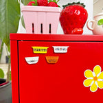 We all know and love these classic bowls! This adorable clay magnet features a yellow vintage-style bowl with a mod kitchen design filled with all the essentials. Perfect for fridges, lockers, calendar boards, etc!