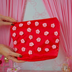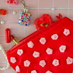 This adorable, pink rosette covered smell proof bag is just the thing you need for your next sesh! Comes in a dreamy red color with a silk-like finish and little pink rosettes covering the front side of the bag - what more could a coquette girlie ask for?