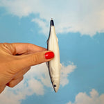 This silver sardine-shaped pen wants to swim into your cart! We love the realistic eyes and the tiny fin details - it even comes with a cute tail-shaped cap to keep your pen from drying out! Would look adorable sitting in your pen holder and makes a great gift for the tinned fish lover in your life!