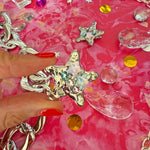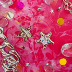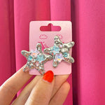 These cutesy star-shaped hair clips have that gorgeous hammered metal look and are adorned with pink and blue colored gems! Attached with silver alligator-style clips, they're perfect for a partial updo or holding up a few locks of hair for effortless style!