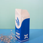 The milk carton design is soooo cute!  Perfect for fresh or dried flowers! Adds a pretty pop of blue and white that can go with many different decor styles.