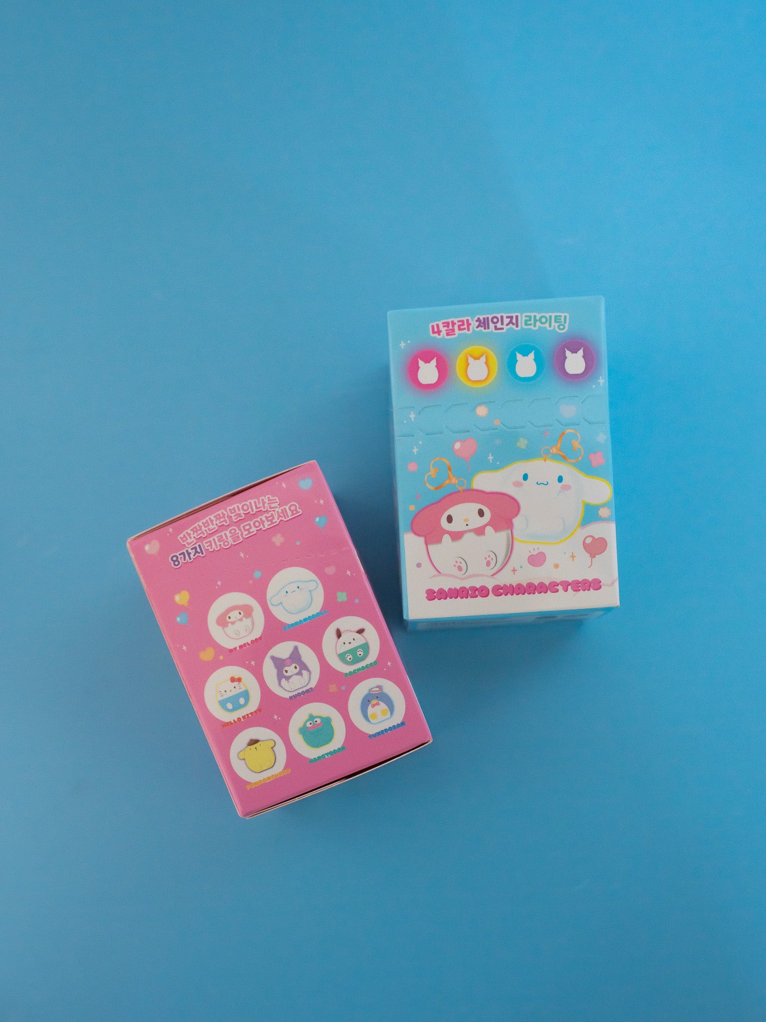 This adorable blind box features our fav sanrio pals as rainbow-colored light up keychains!