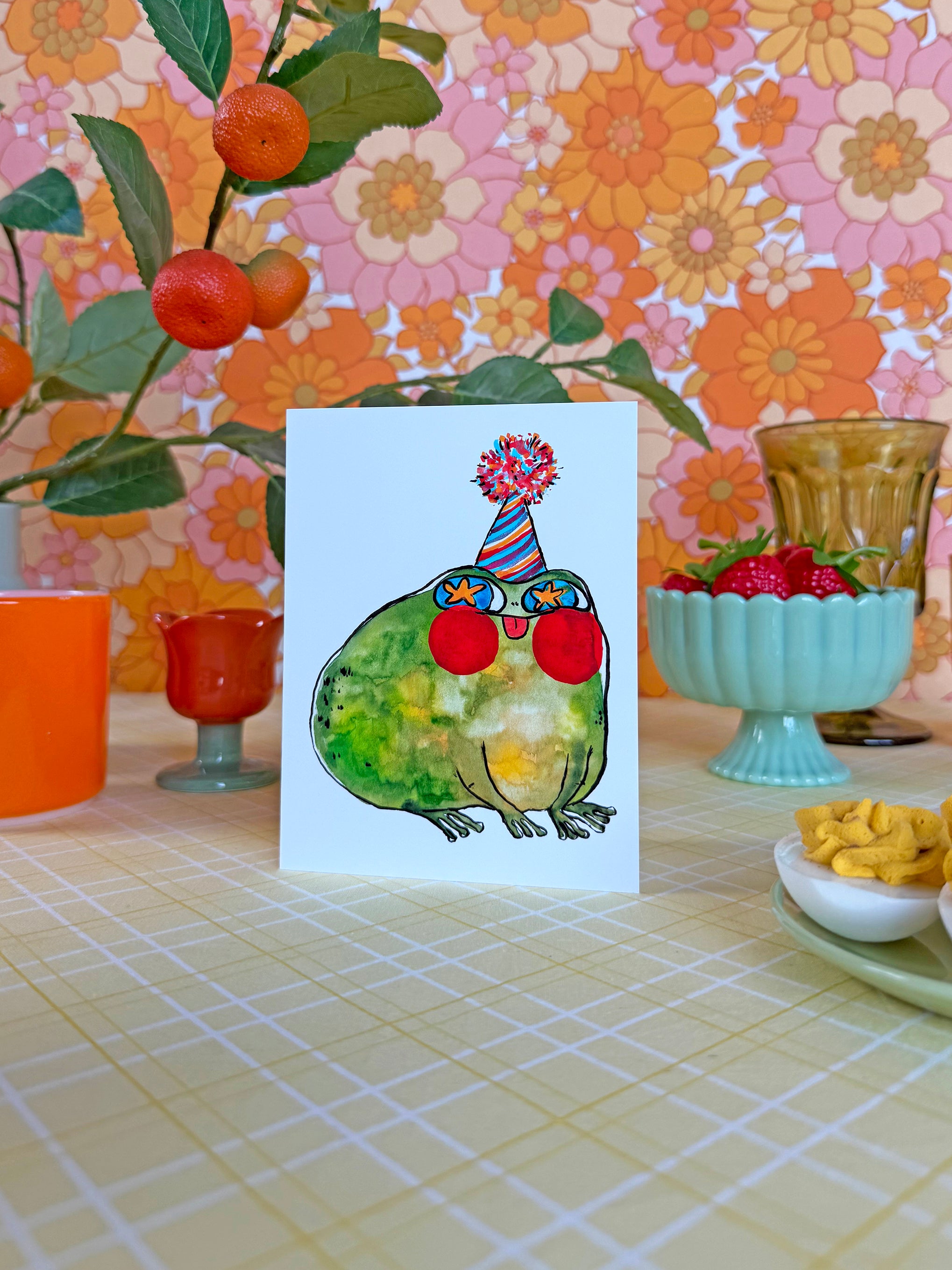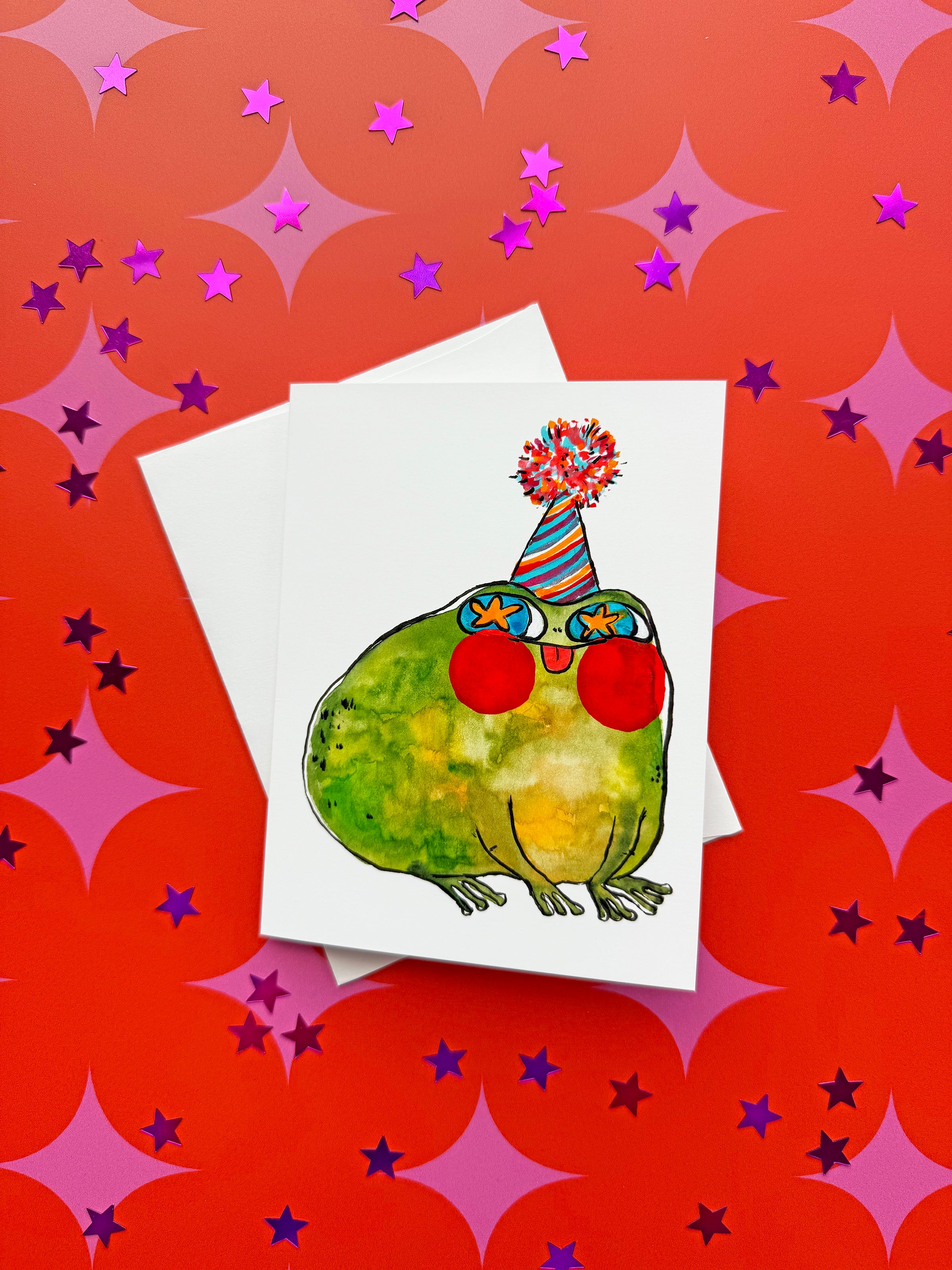 This card features a silly little frog sticking his tongue out! He's got his birthday hat on and he's ready to party!