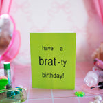 you just found the brat-tiest birthday card for your brattiest friend! because once a brat, always a brat.