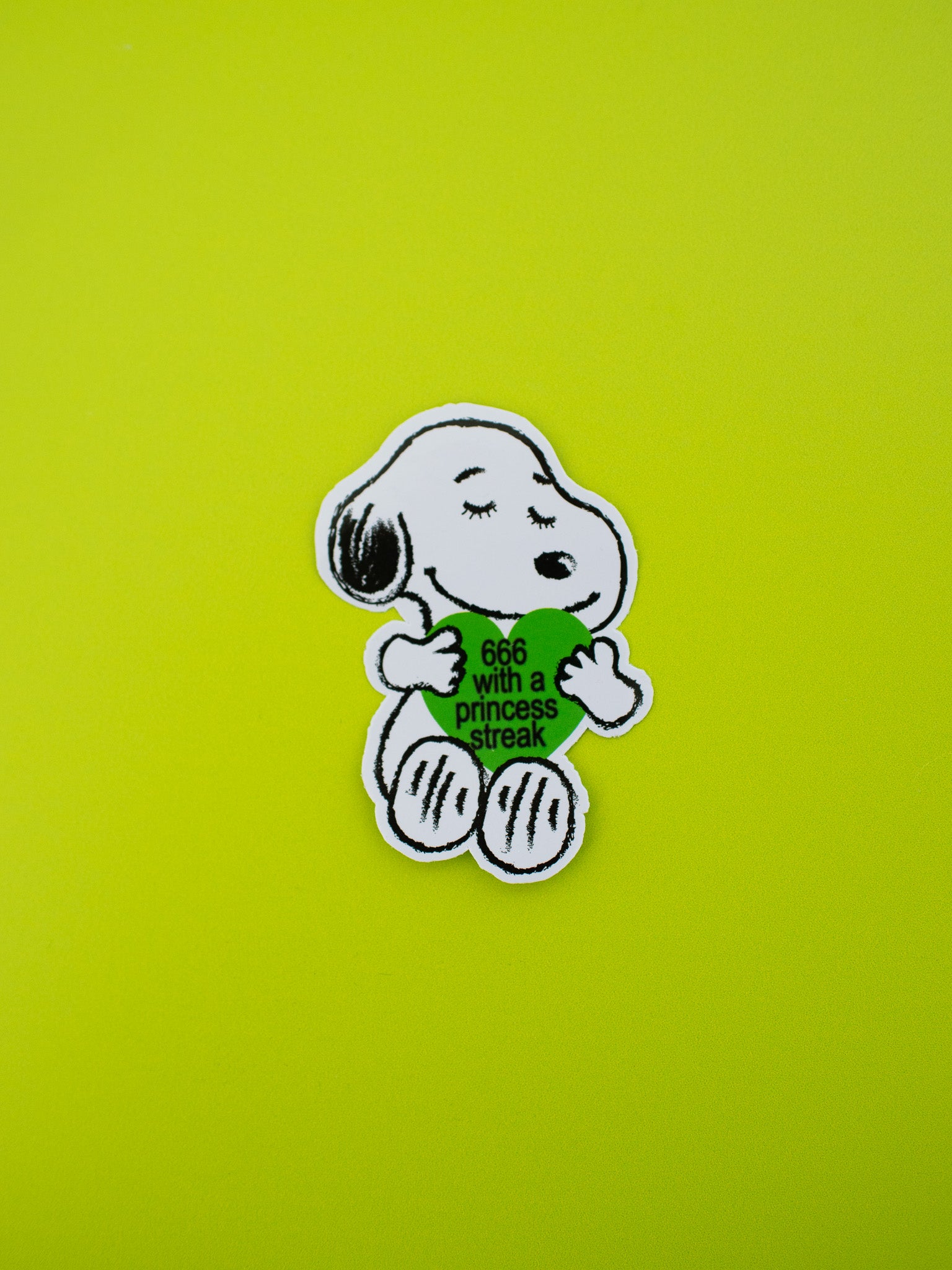 This sticker features snoopy vibing w some Charli xcx lyrics.