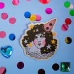 This sticker features a fabulous illustration of a glam rock inspired clown on a holographic background! Perfect for whatever you wanna stick it on- water bottles, tumblers, laptops, lockets, diaries, cars, helmets, bikes, skateboards, etc!
