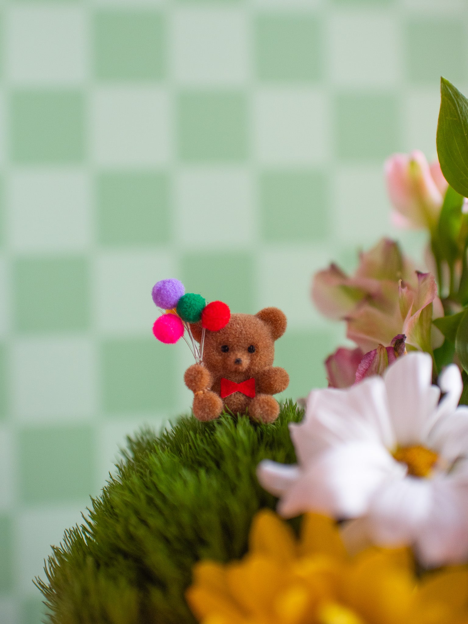 This adorable felt bear is holding equally adorable, multicolored balloons that will remind you that while not every day is your birthday, you can always pretend that you're the main character, 365 days a year!