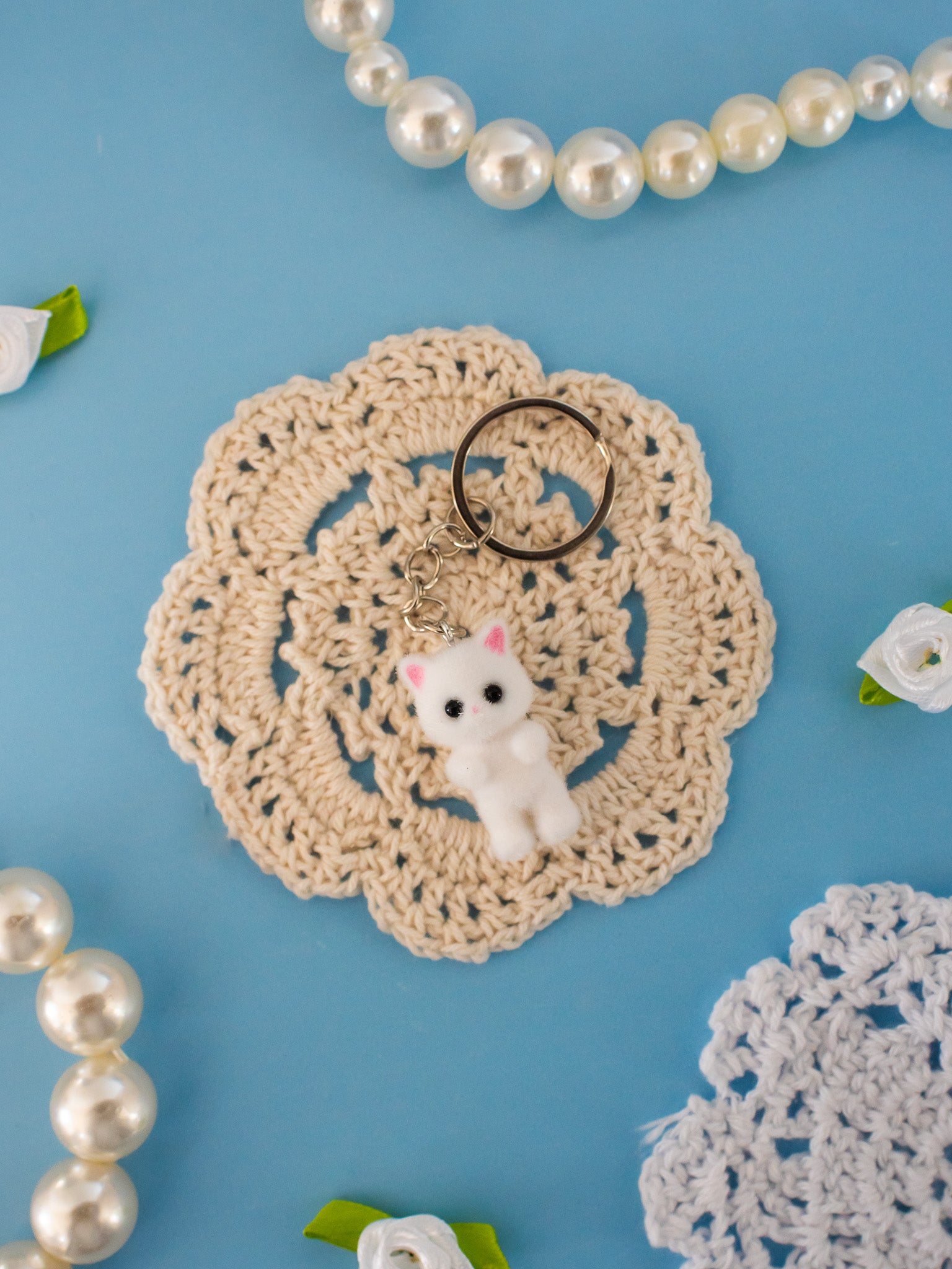 Listing is for x1 keychain with white cat.