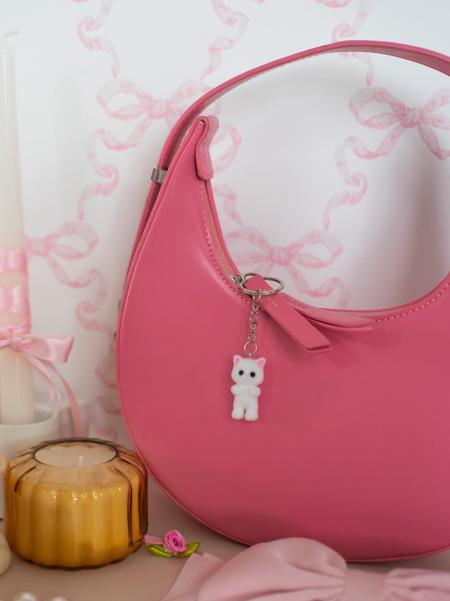 An adorable critter for your keys!! We can't keep these on the shelves in our IRL ASOT shop, so we wanted our long distance friends to be able to get them, too <3 Features one REALLY cute fuzzy white cat on a silver keyring.