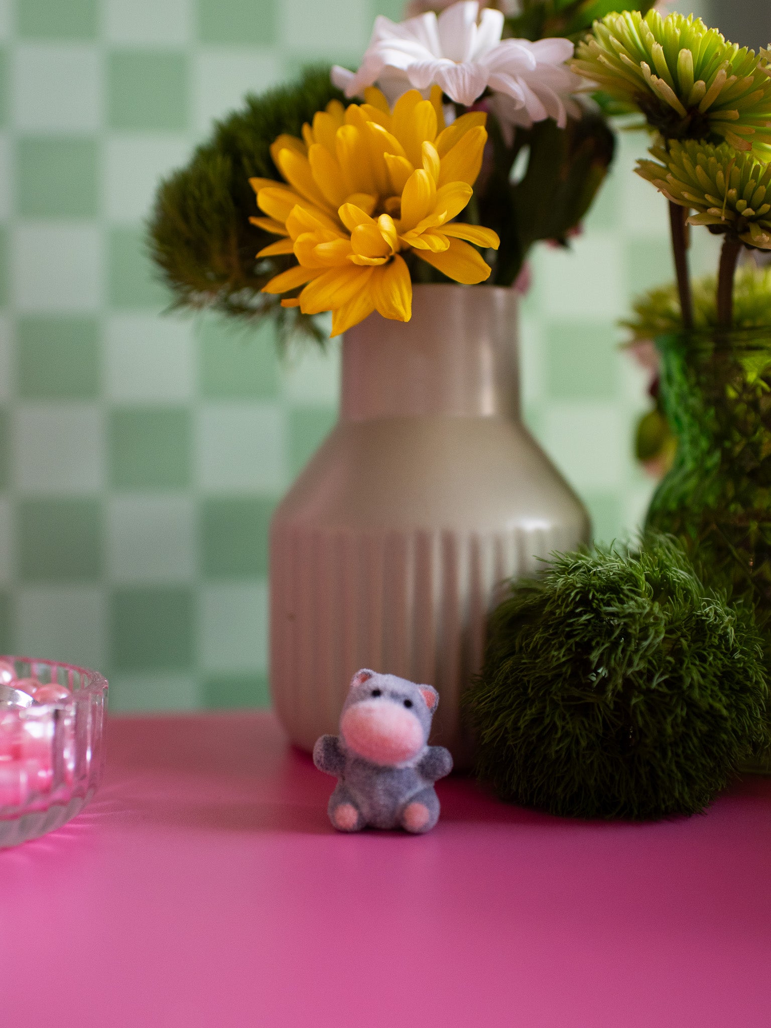 This super cute felt mini hippo is up for adoption and wants to come home with you! She's giving Moo Deng and we couldn't be more obsessed <3