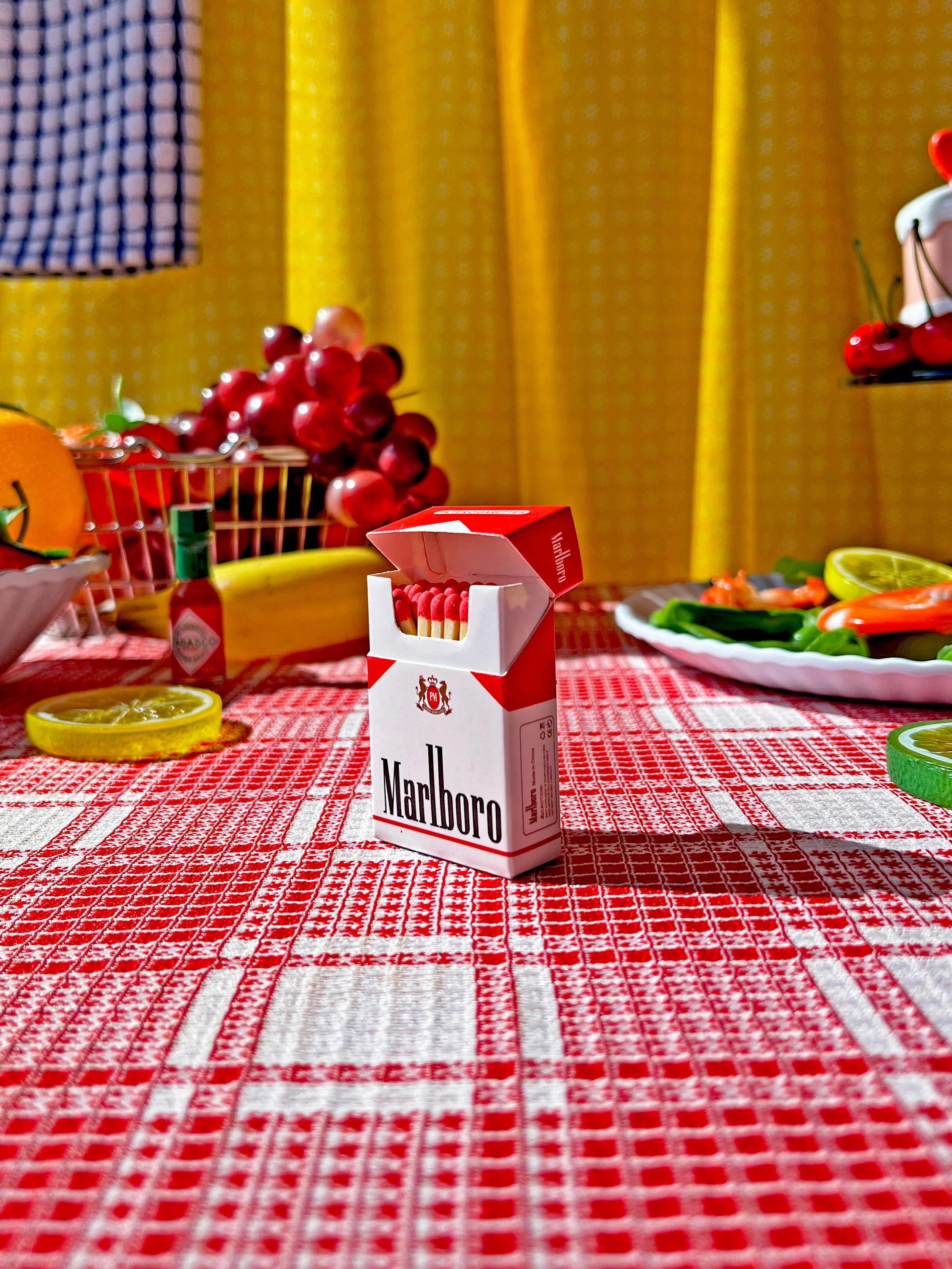 Approx. 30 red-tipped matches come in this novelty kitschy fun Marlboro mini cig box! It even opens like a cig box. We're in looooove!