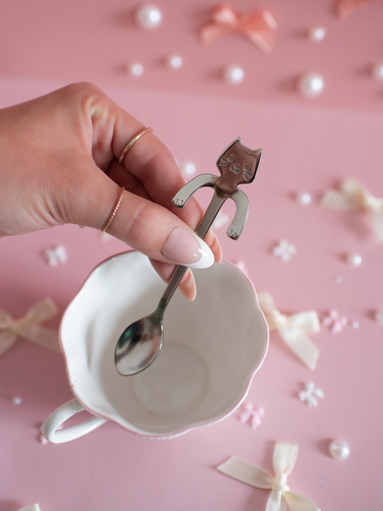 This silver teaspoon features a little kitty with arms that let it sit perfectly on the rim of a cup of (kit)tea. Sooo adorable and sure to be your new fav multi-purpose teaspoon!