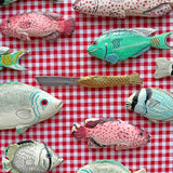 This mini pocket knife features a brass fish-shaped handle, a stainless steel blade, and a loop on the fishy's tail for easy attachment onto a key ring! Perfect for opening packages, cutting fishing line (if you're about that life), or gifting to your favorite fish enthusiast!