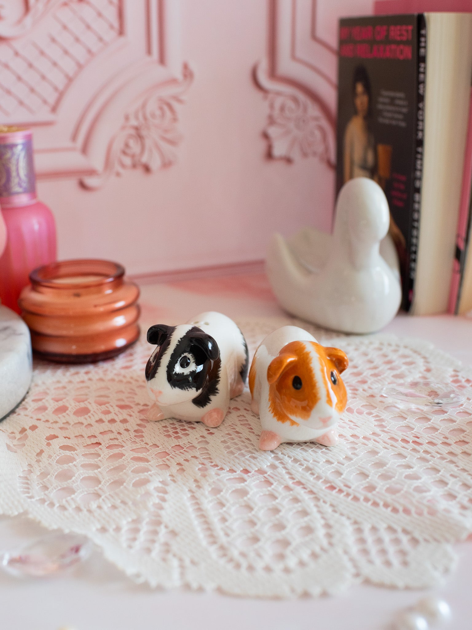 These salt and pepper shakers look just like a happy guinea pig couple. Each one has the cutest details like tiny leeeetle feets and cute ears!!