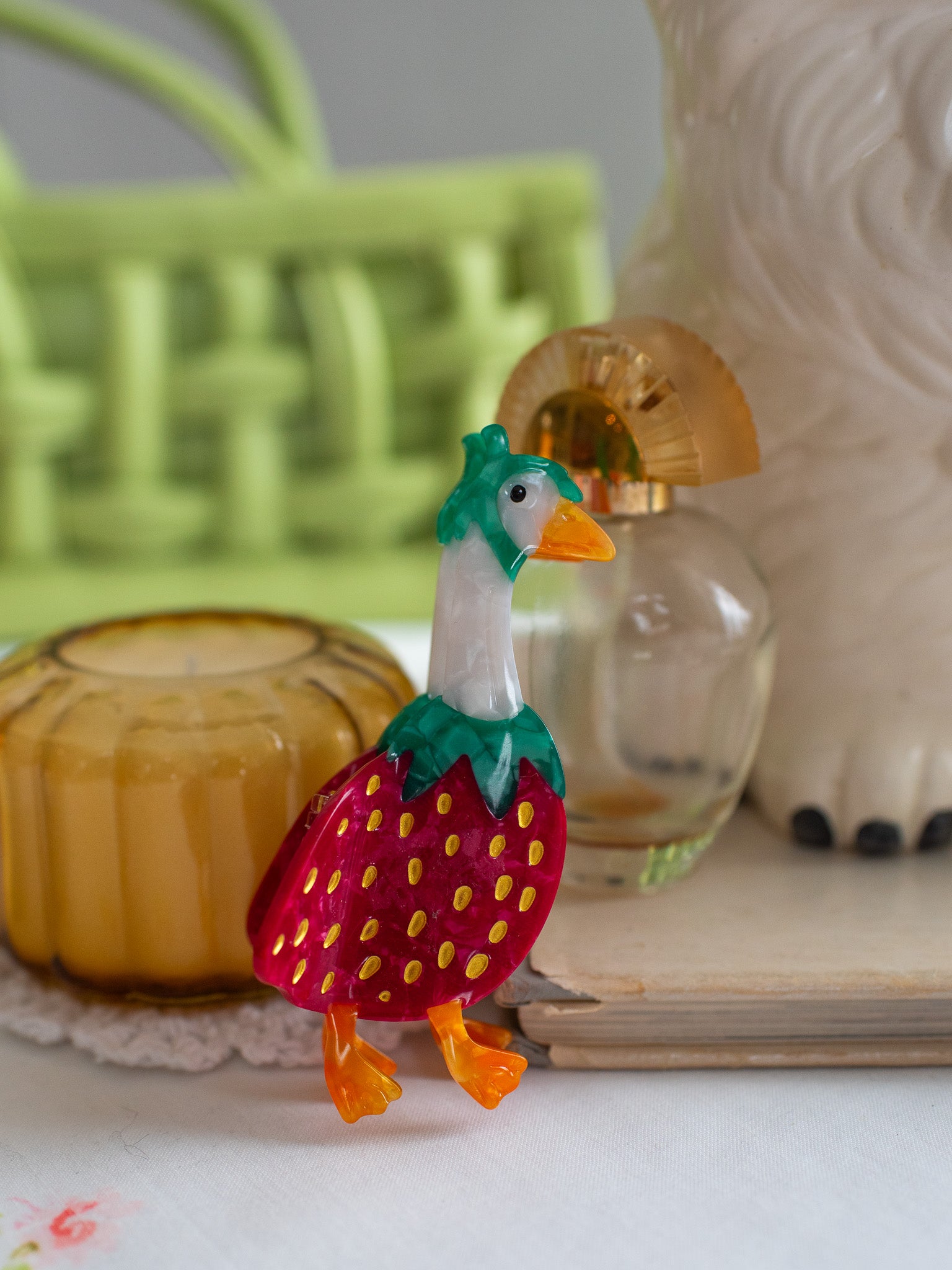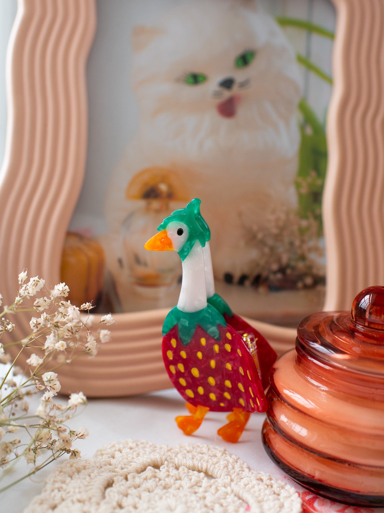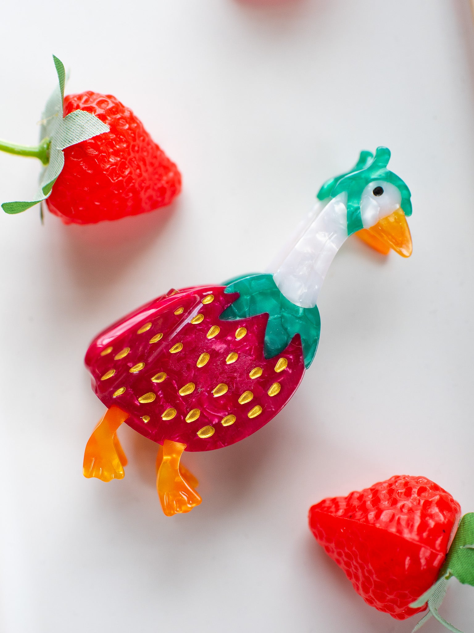 It's a strawberry and a goose, what's not to love? Made from cellulose acetate, a plant-based alternative to plastic.