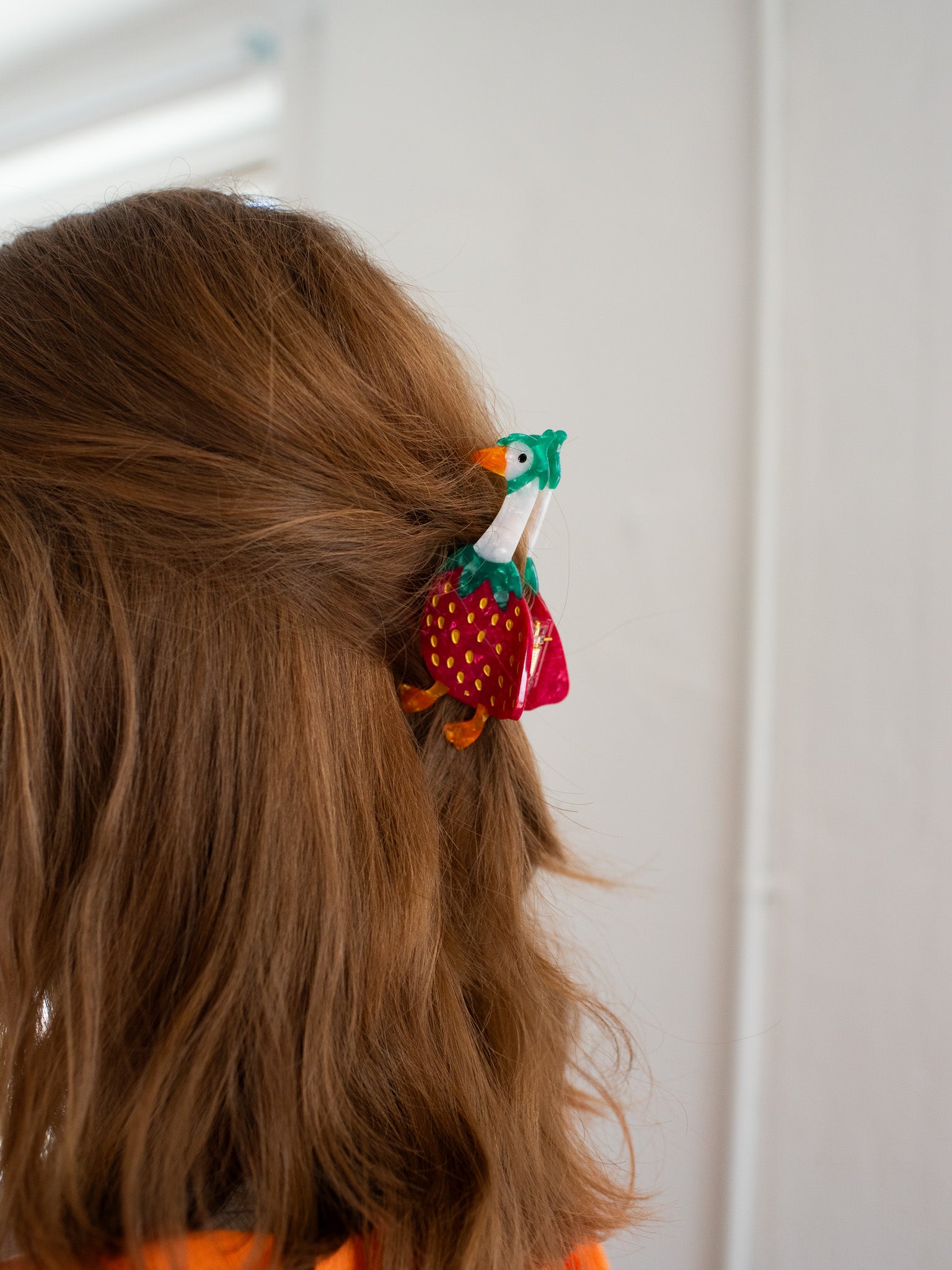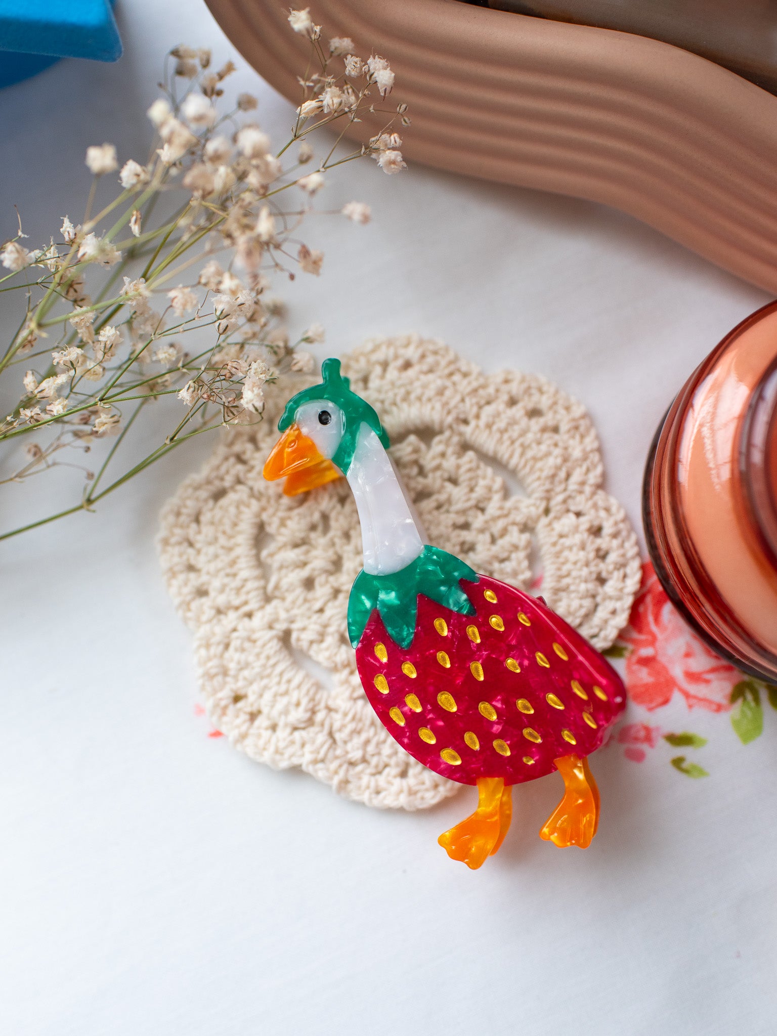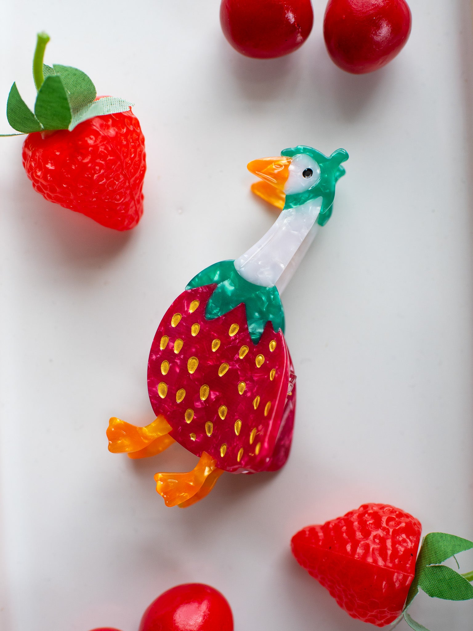 It's a strawberry and a goose, what's not to love? Made from cellulose acetate, a plant-based alternative to plastic.