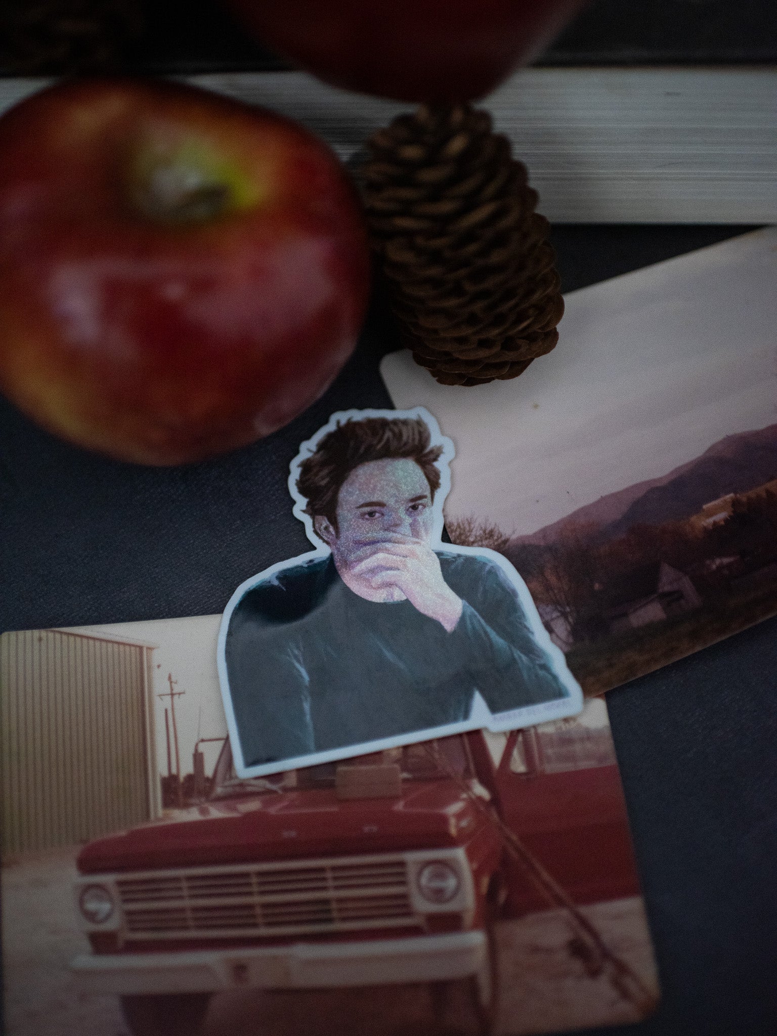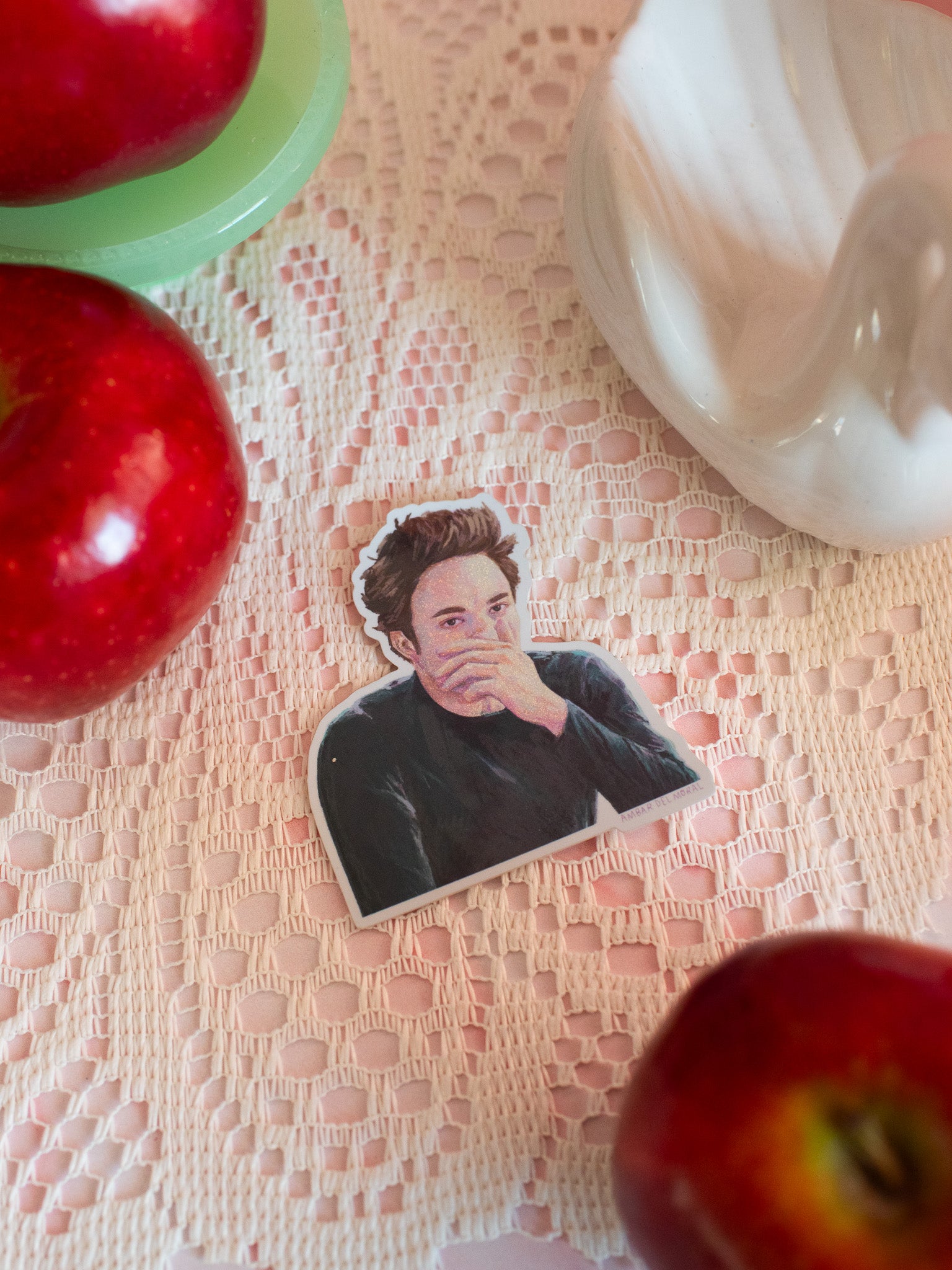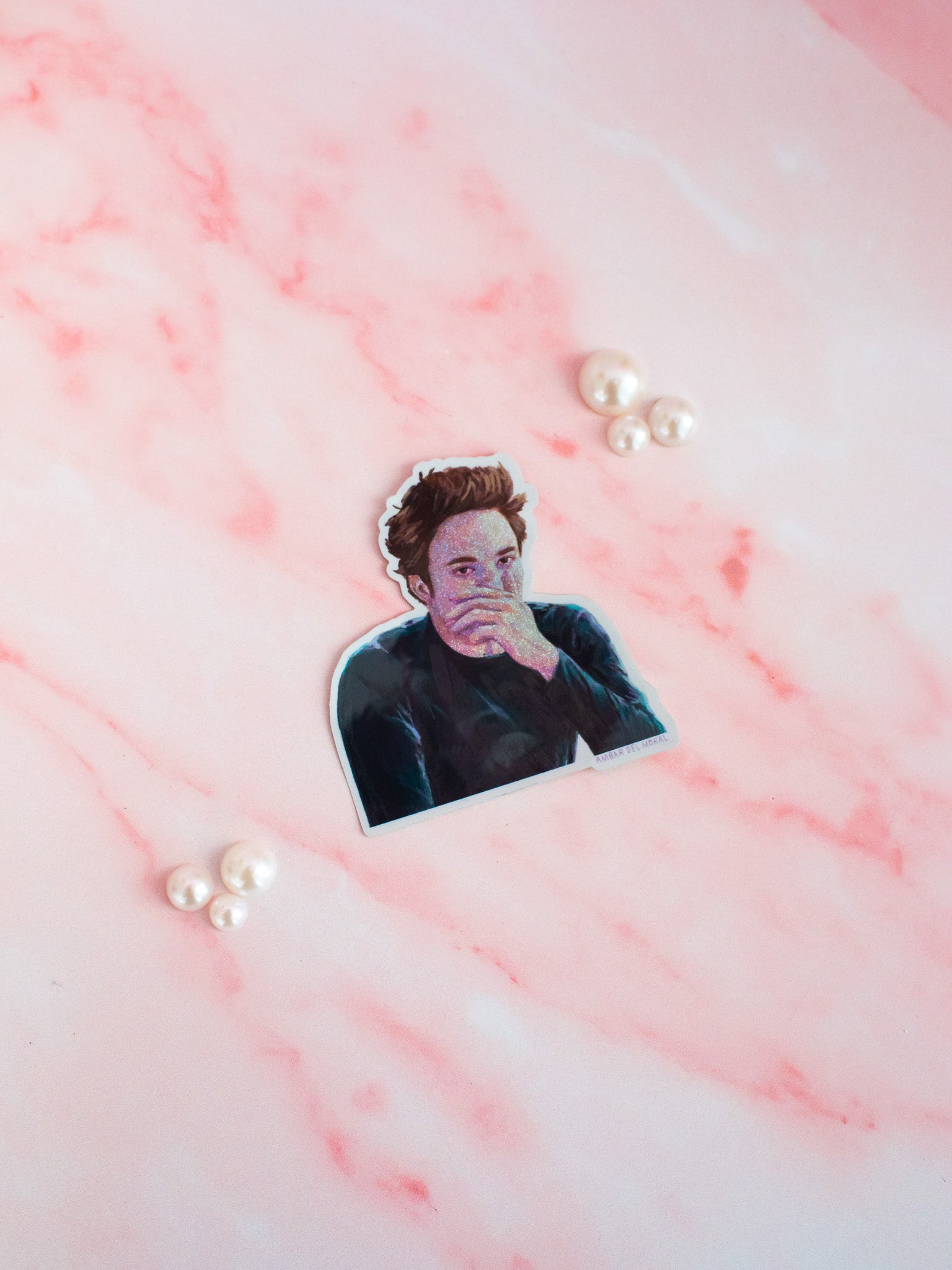 This vinyl sticker features a glittery Edward Cullen covering his nose because he cannot stand the smell of that one girl in class.