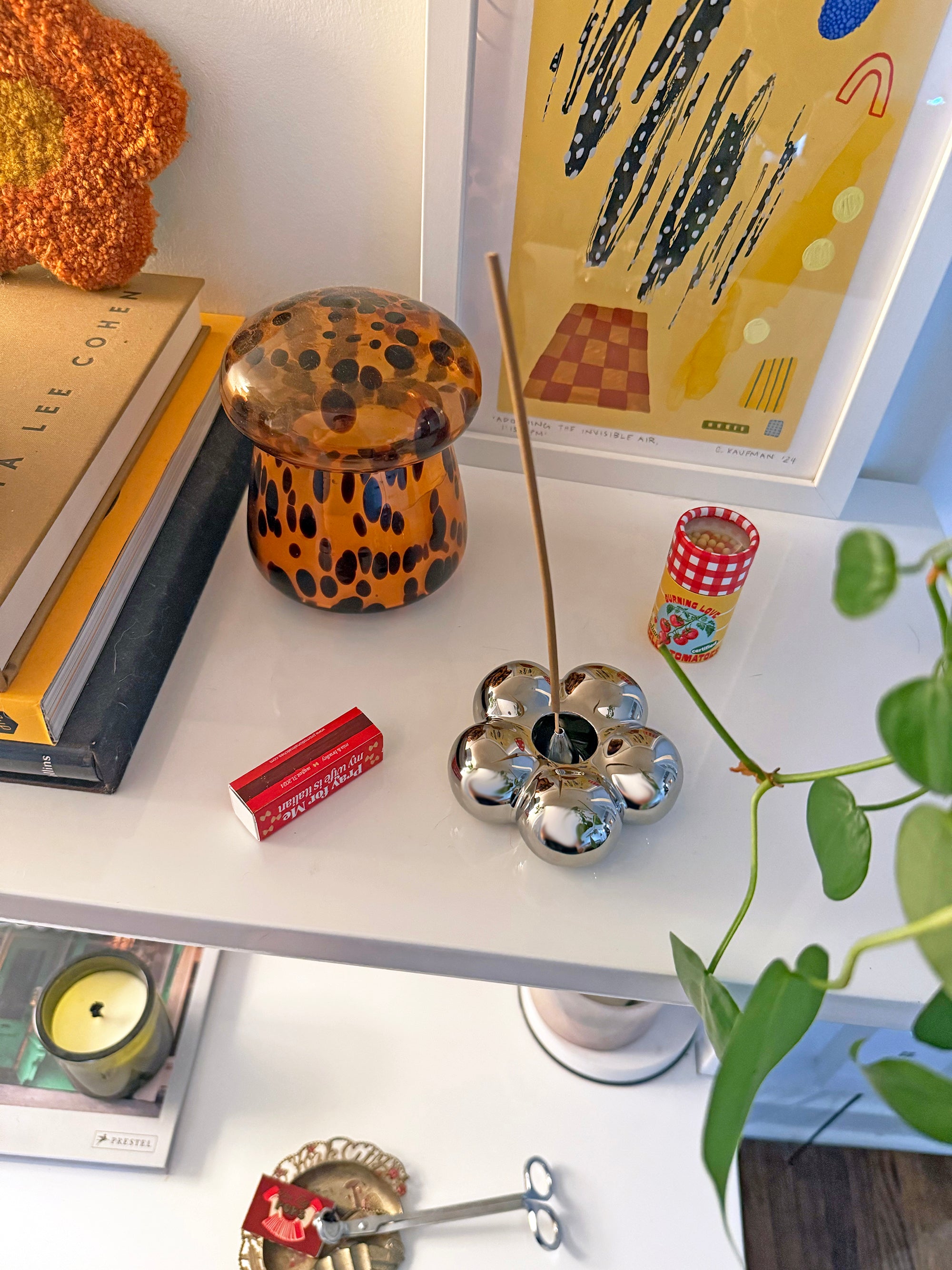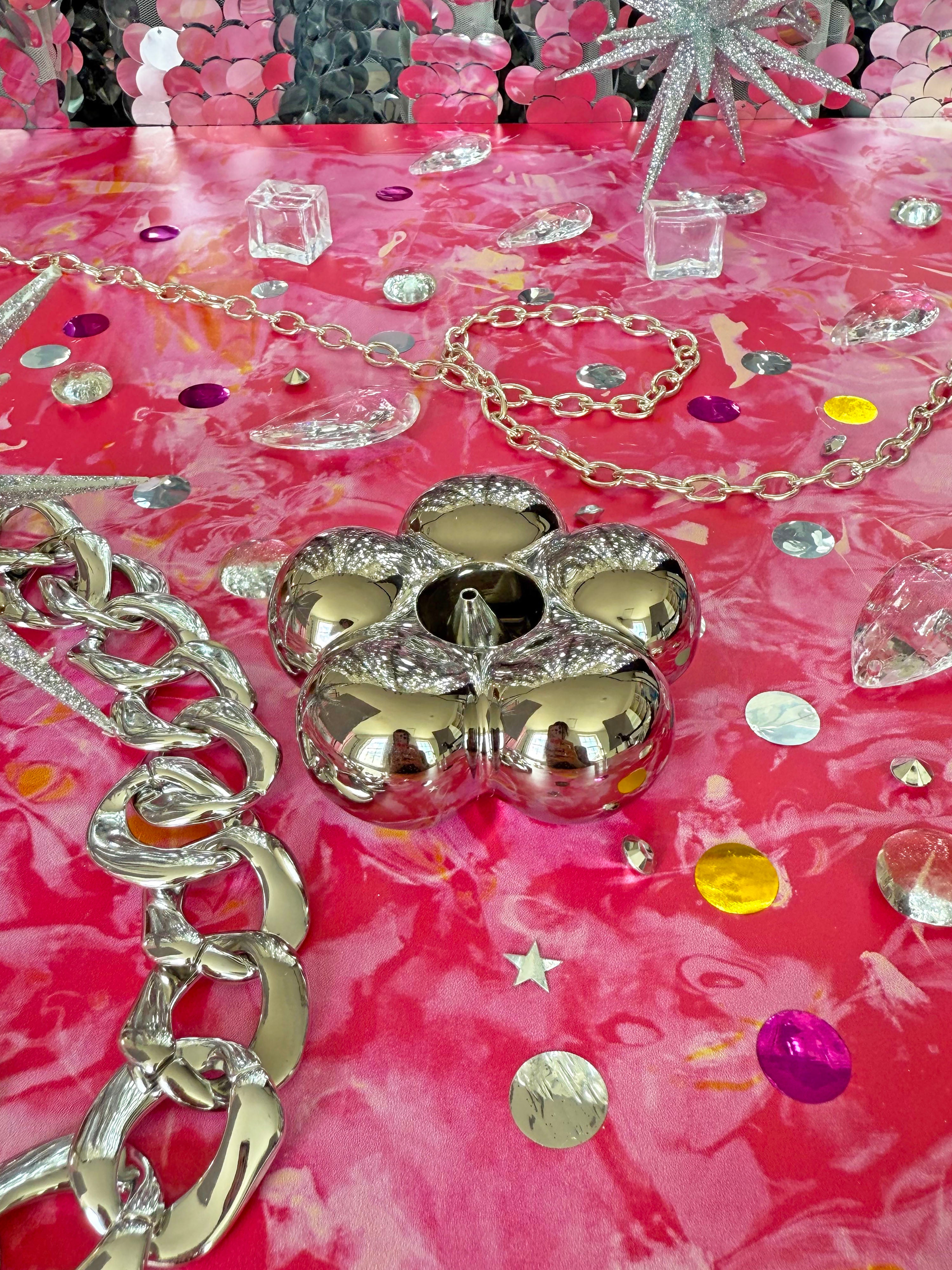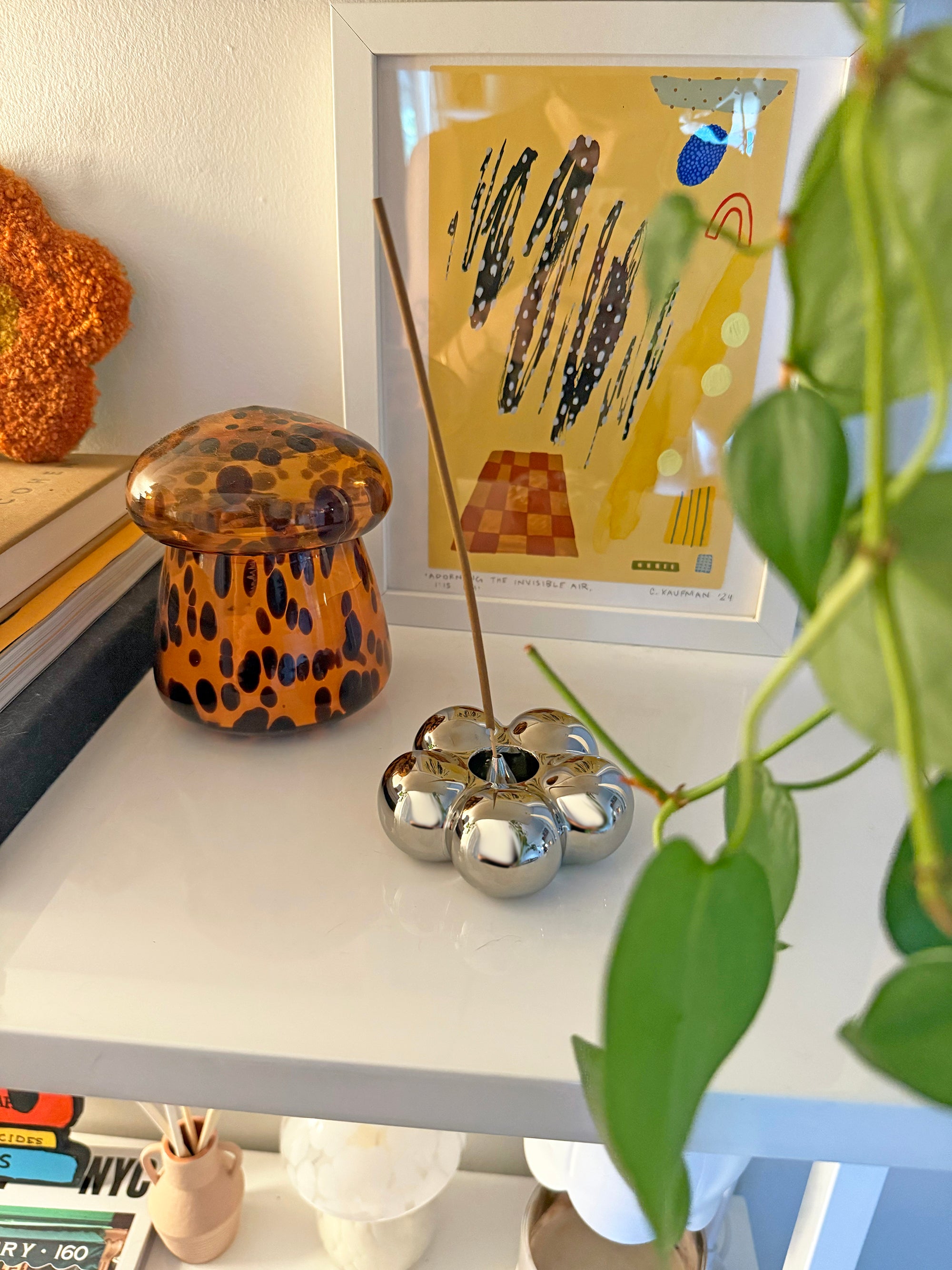Elevate the way you burn incense with this chrome, flower-shaped holder! Simply place your incense of choice in the center of the flower and light! Would look adorable sitting on a shelf or desk when not in use!