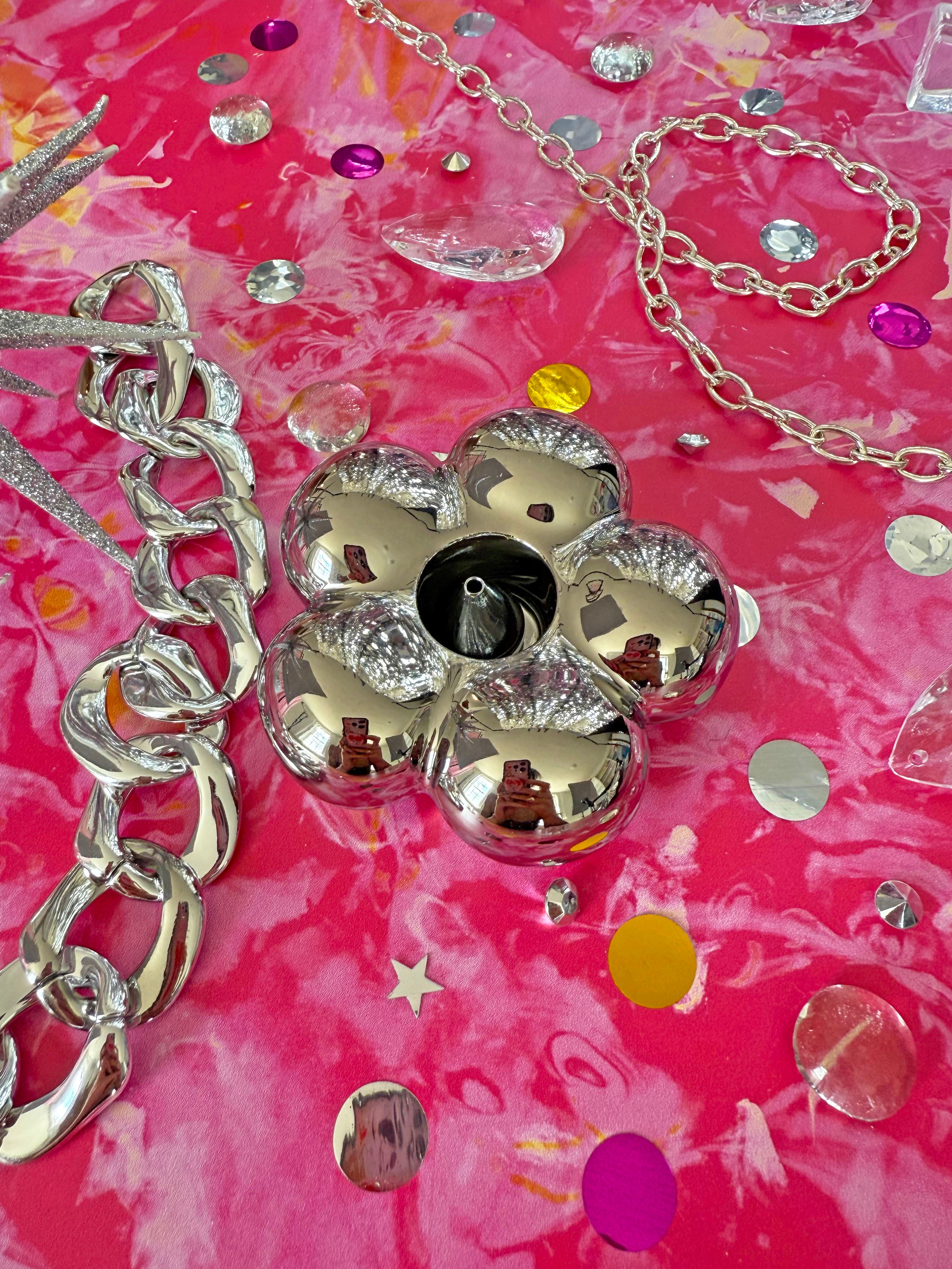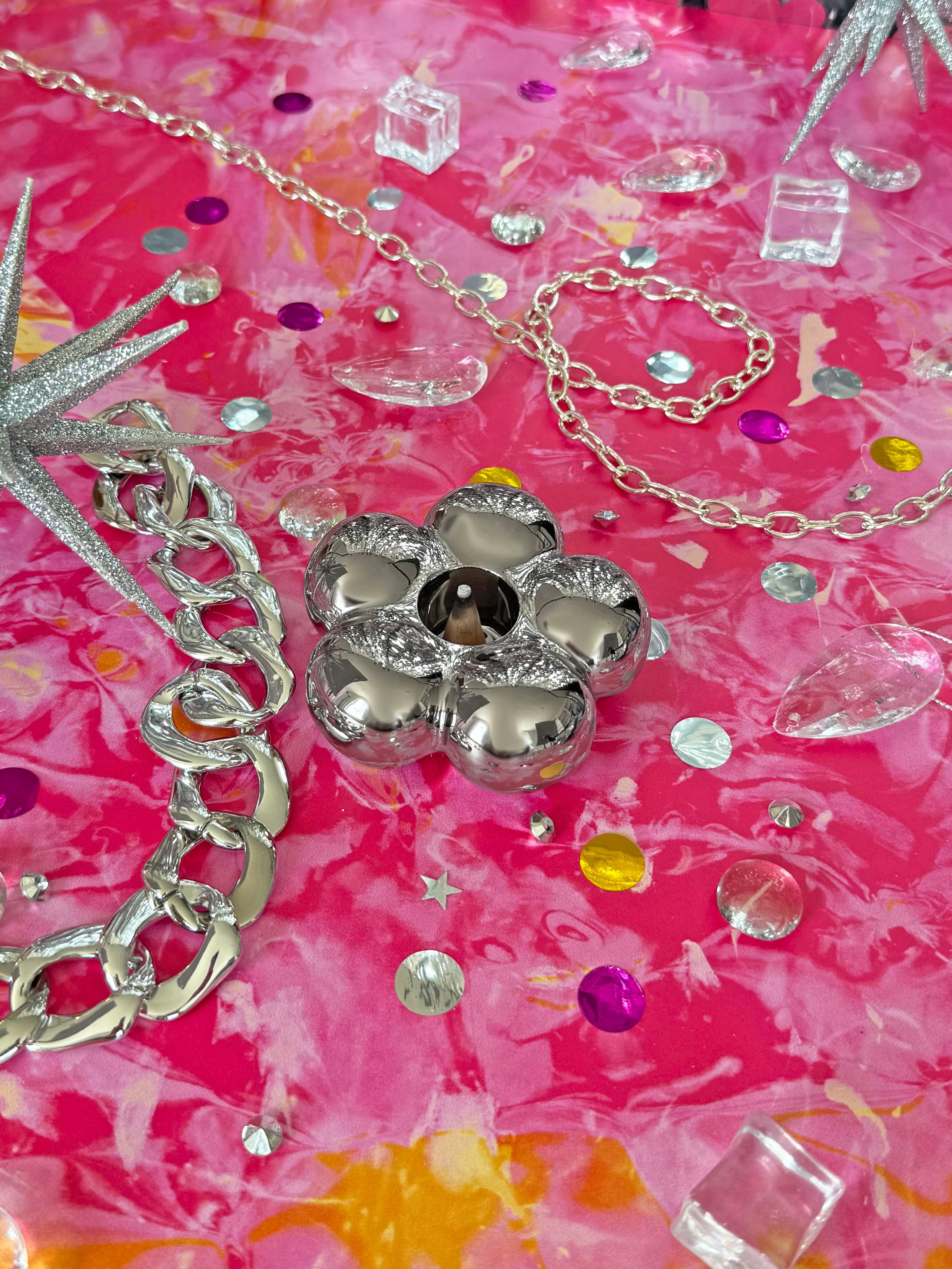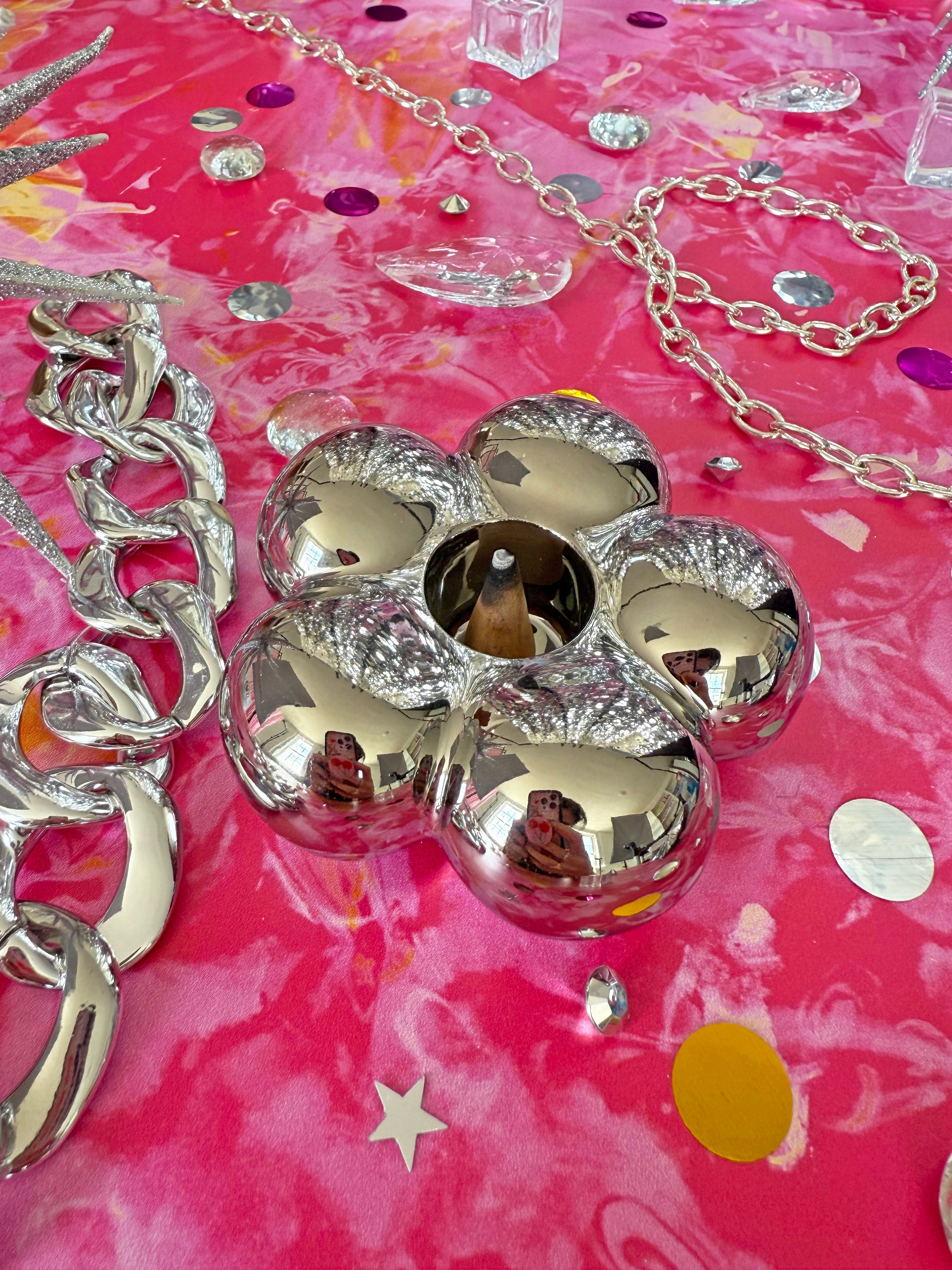 Chrome Flower Incense Holder