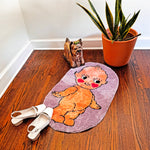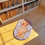 Measures 33" x 21". Design features a cutie Kewpie! Slip resistant backing, so no need to get rug tape! Made from 100% polyester, can be machine washed, but we recommend hand washing. Do not iron, air dry only.