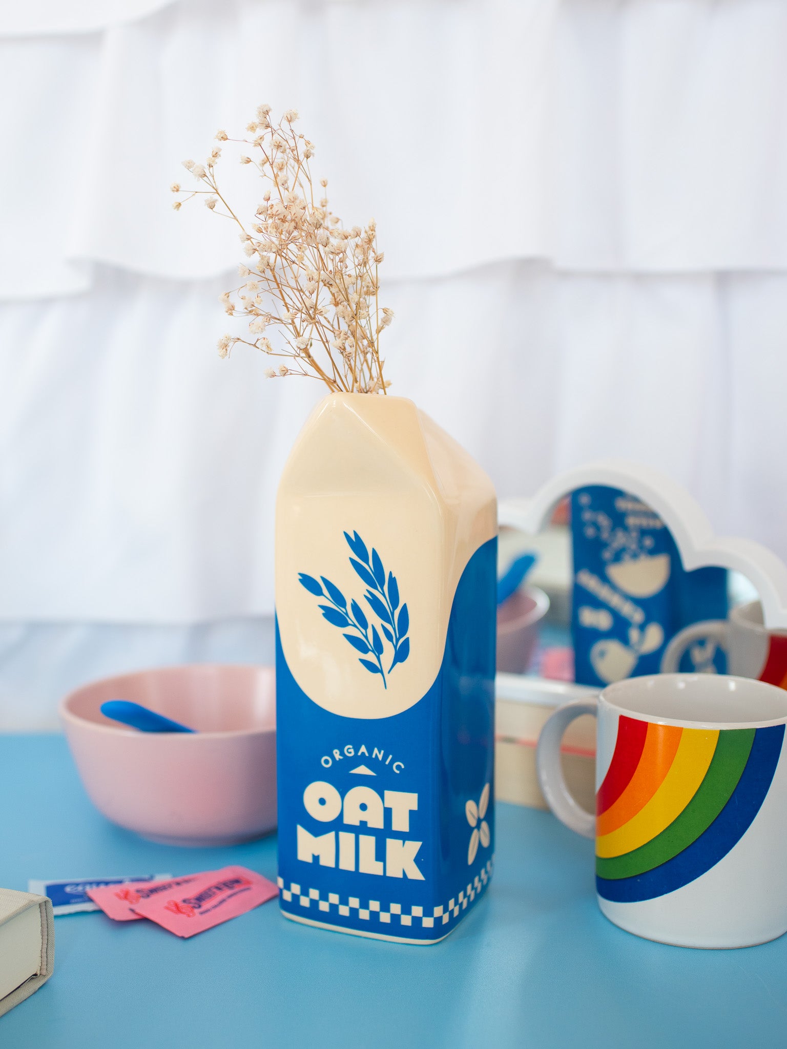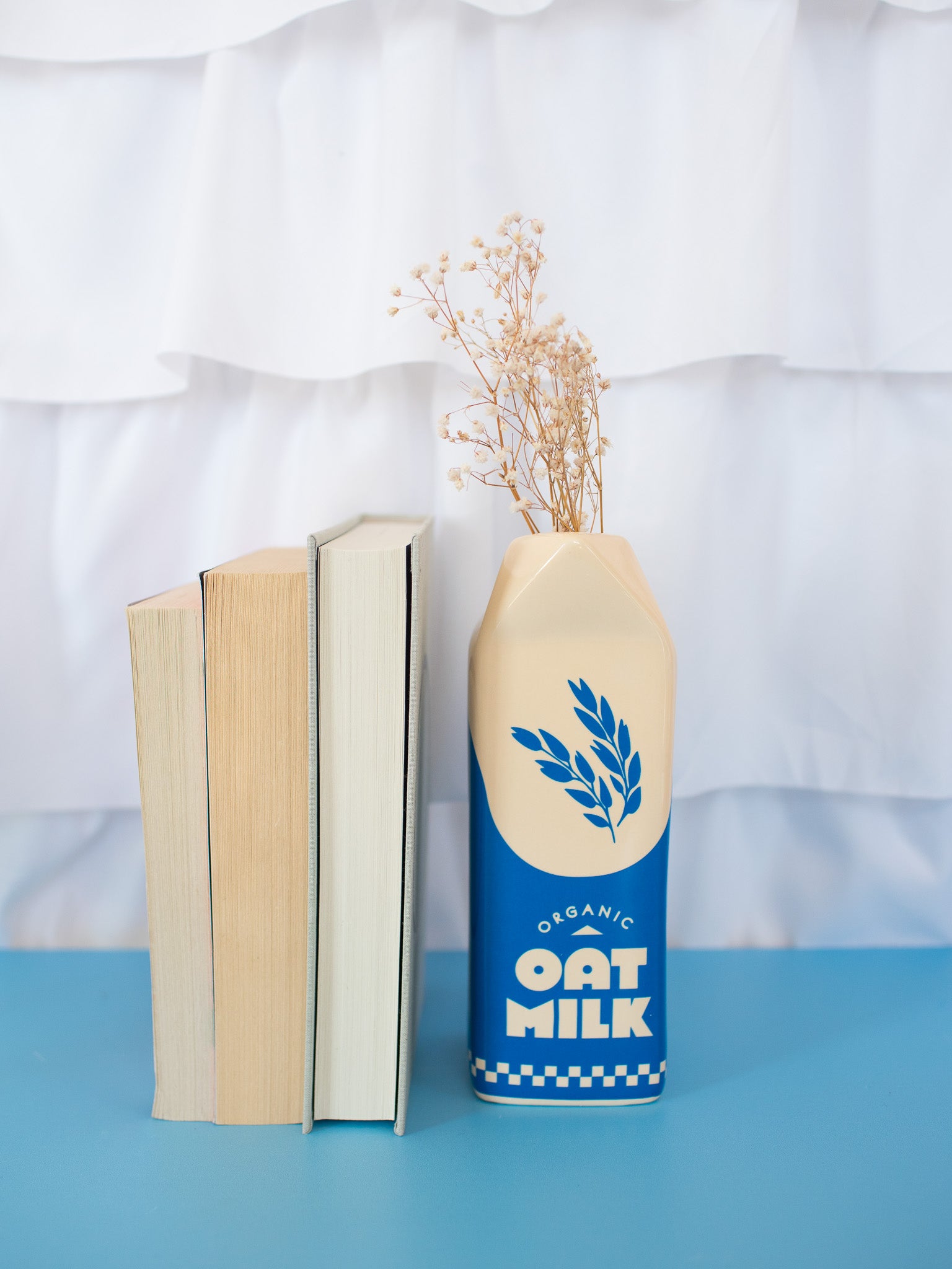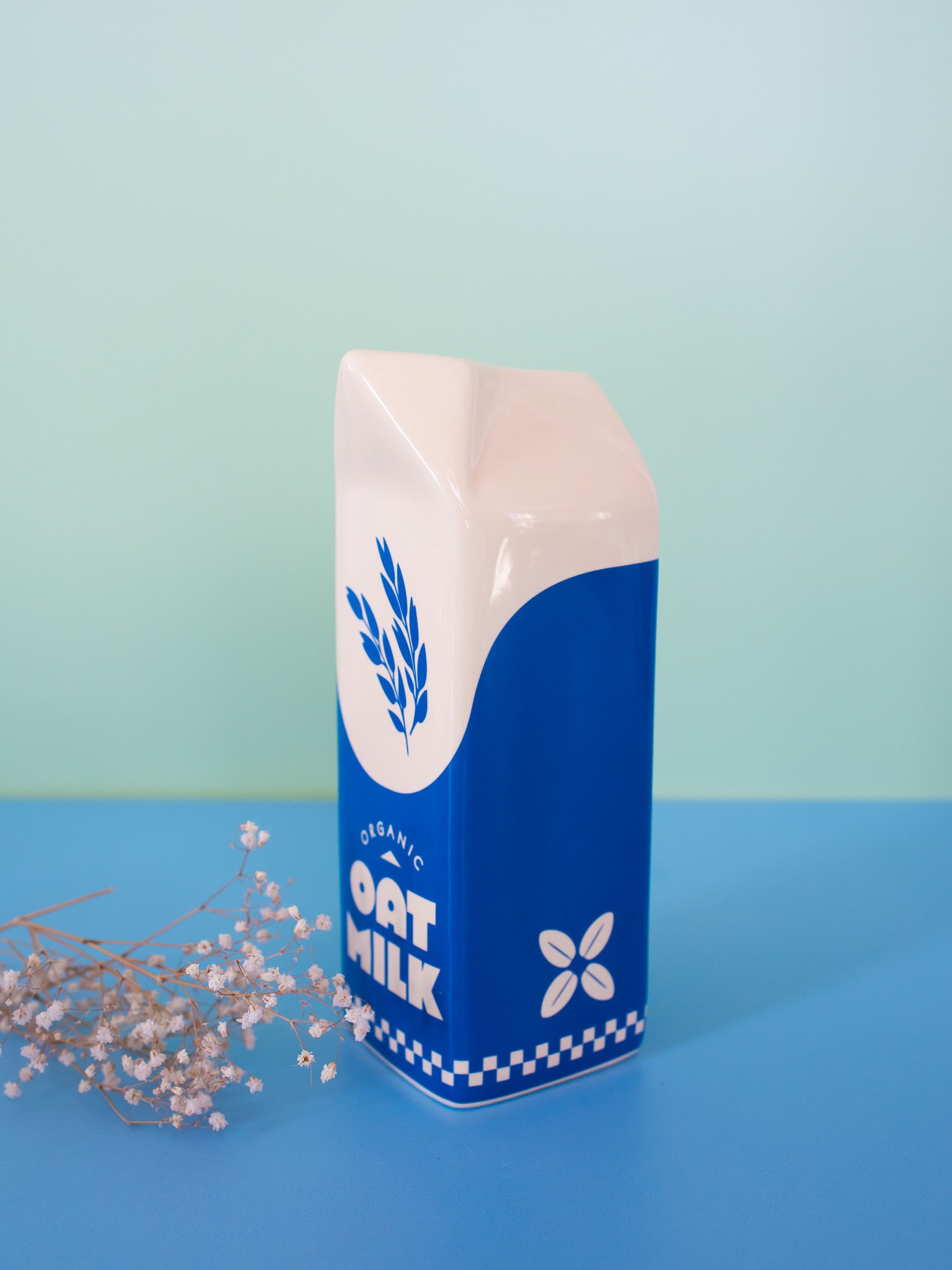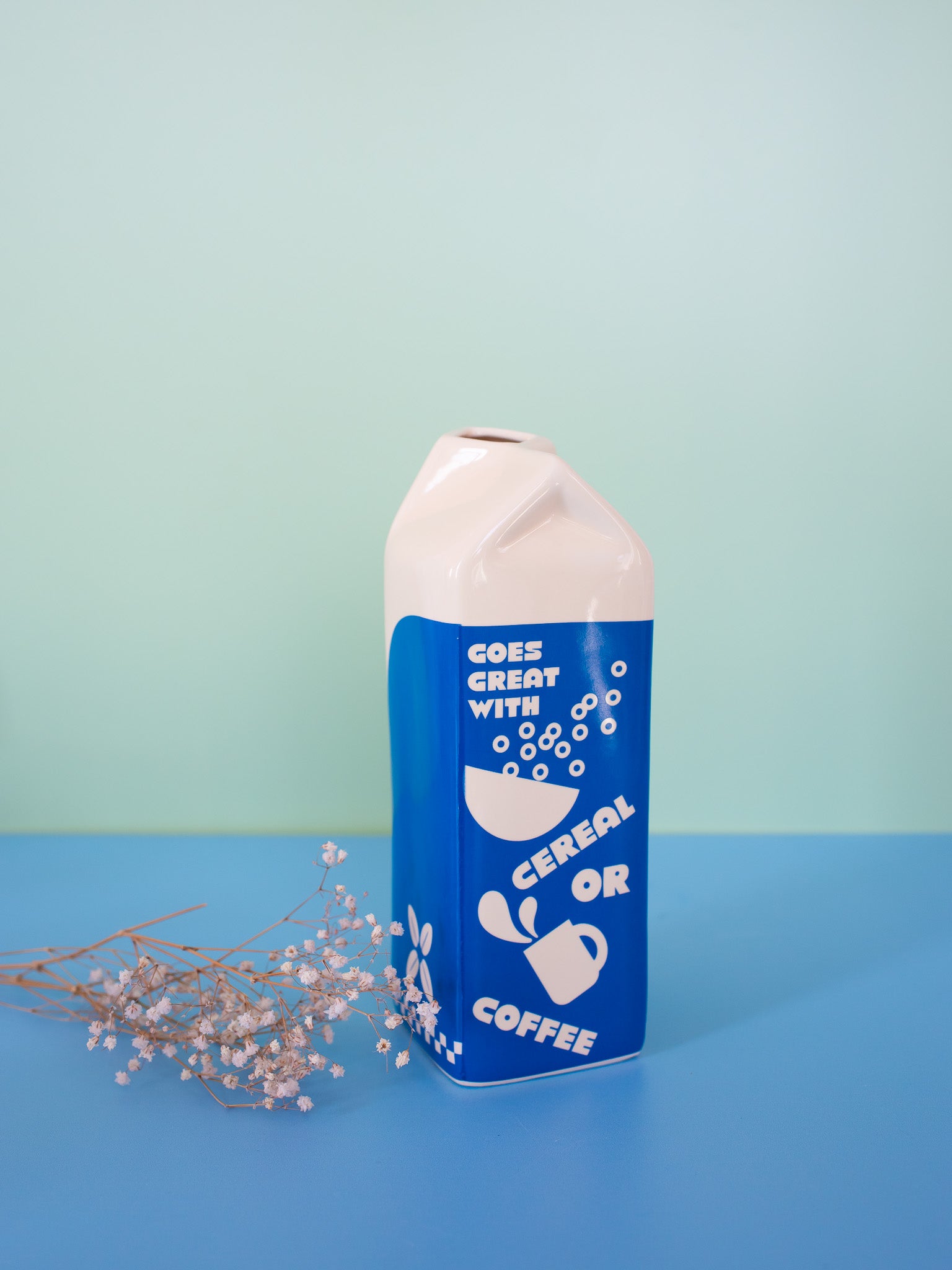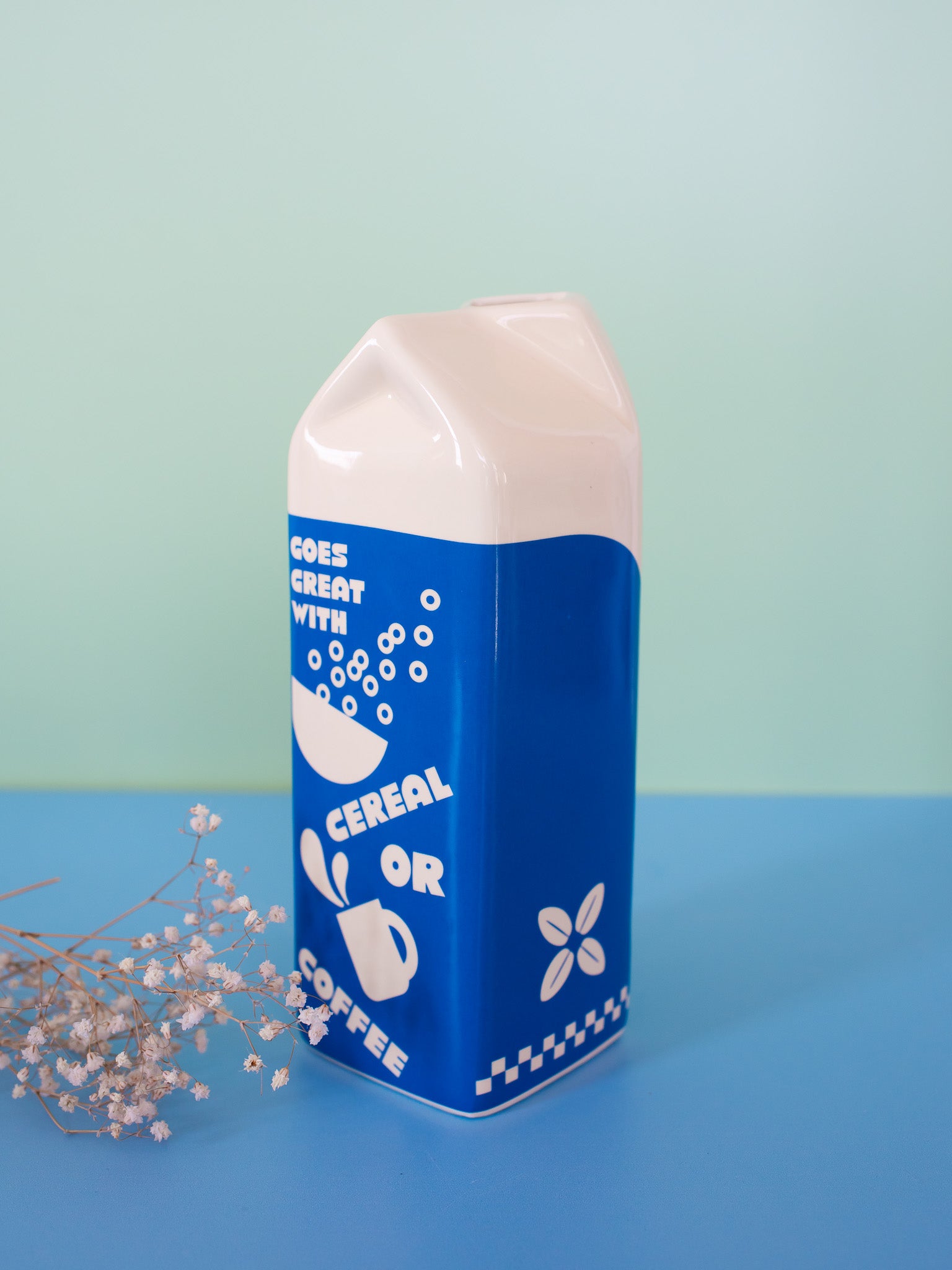 The milk carton design is soooo cute!  Perfect for fresh or dried flowers! Adds a pretty pop of blue and white that can go with many different decor styles.