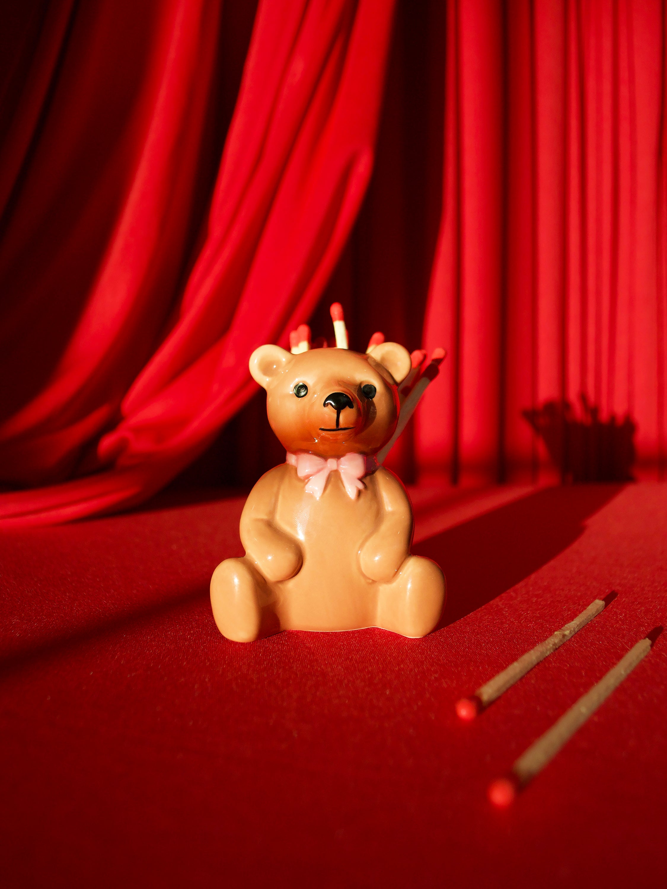 This striker is shaped like the cutest little bear you've ever seen! Comes with 25 matches measuring 3.75" each, stored conveniently inside the bear! When you need a light, tilt it over and strike a match on the base! Looks great on a desk, coffee table, shelf, etc! Also makes a cute tiny vase for tiny flowers :)