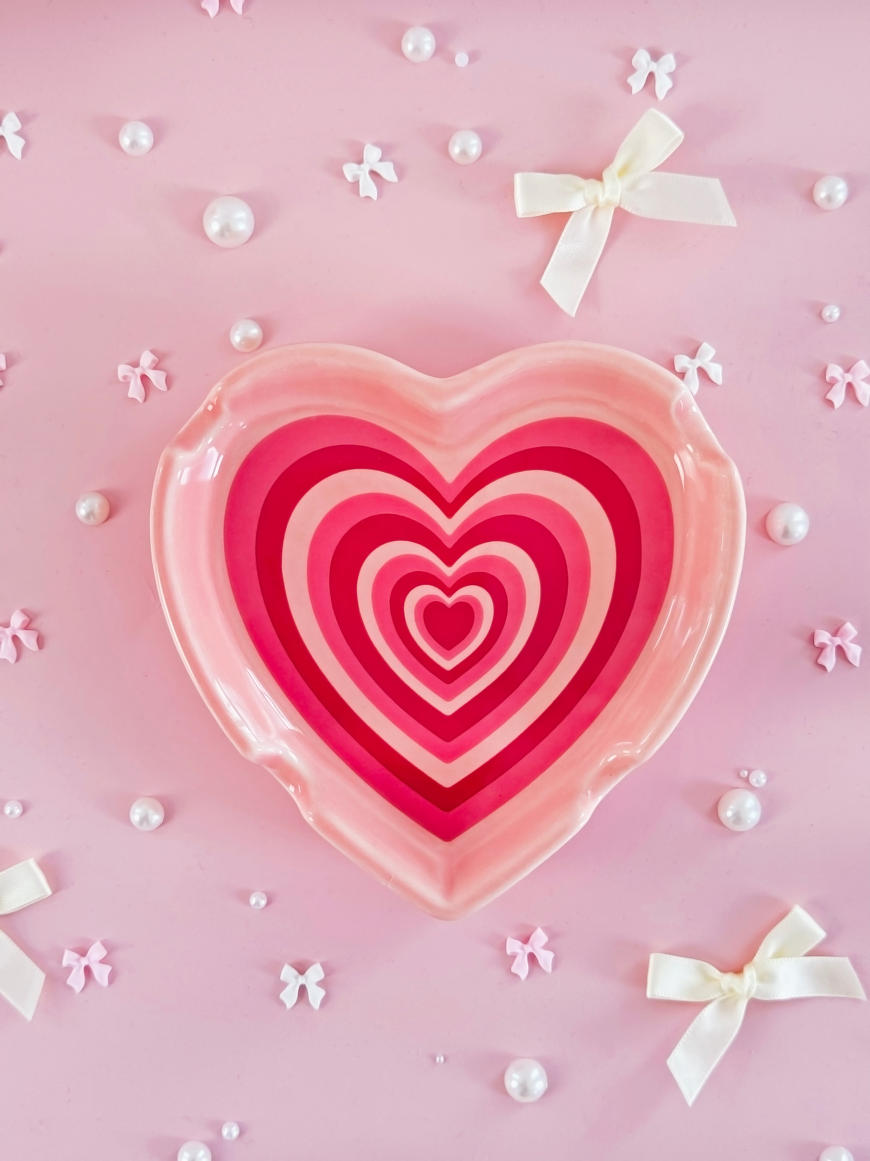 Designed by me, the girl writing this copy and taking these photos lol, this ashtray is handcrafted of substantial ceramic with an infinite heart print and a rosy pink border. Ashtray is handmade and will have minor flaws that make each one unique.