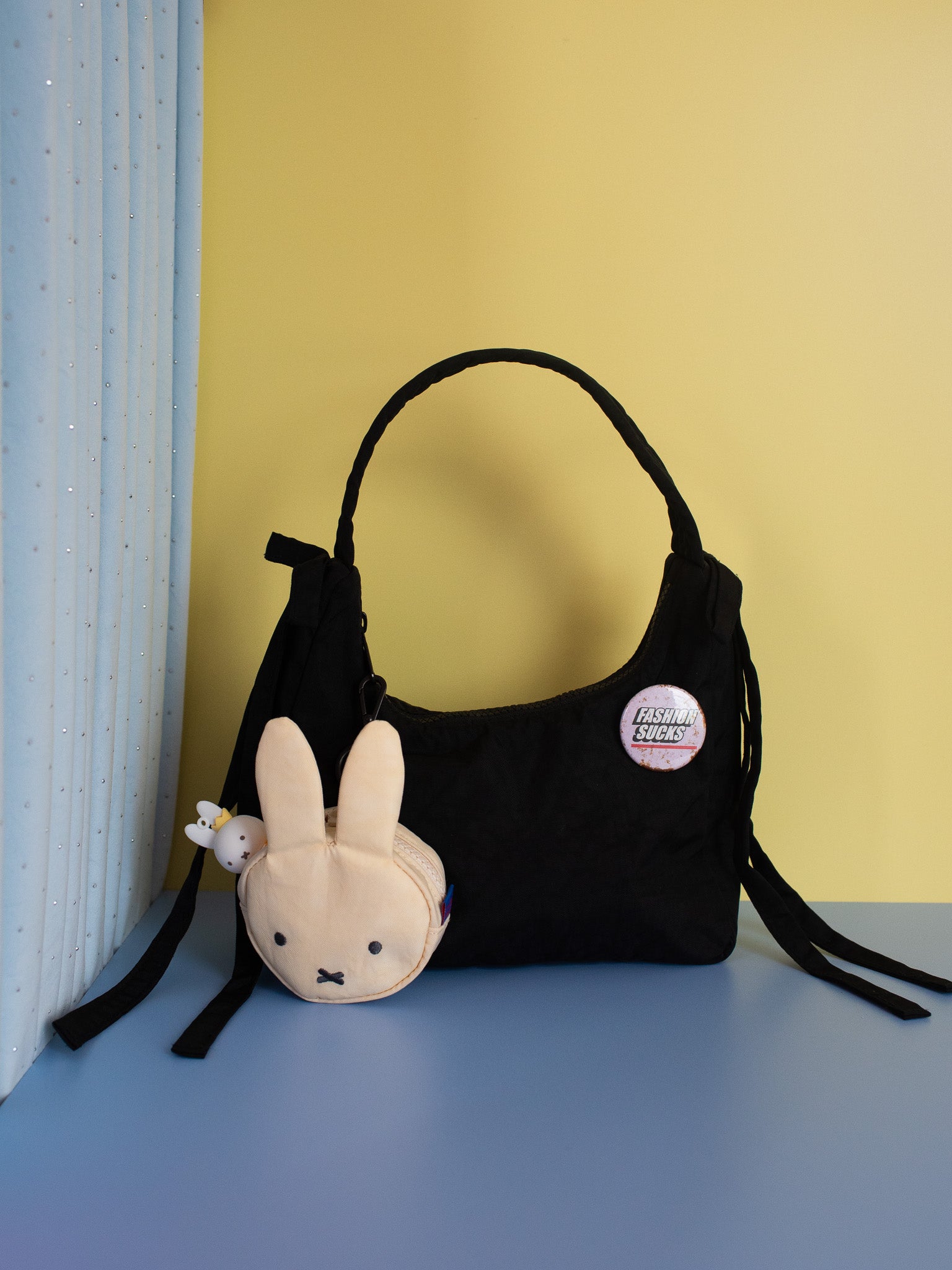 This Baggu+Miffy bag charm is the cutest thing we've ever seen!! The pouch is Miffy-shaped, duh, and her embroidered face is sweet as can be! She comes with a keychain and jump ring to make attaching her to any bag a breeze. Comes in the perfect size for stashing your keys, cash, sonny angels, etc. And also has a zipper closure to secure your goodies of choice inside!