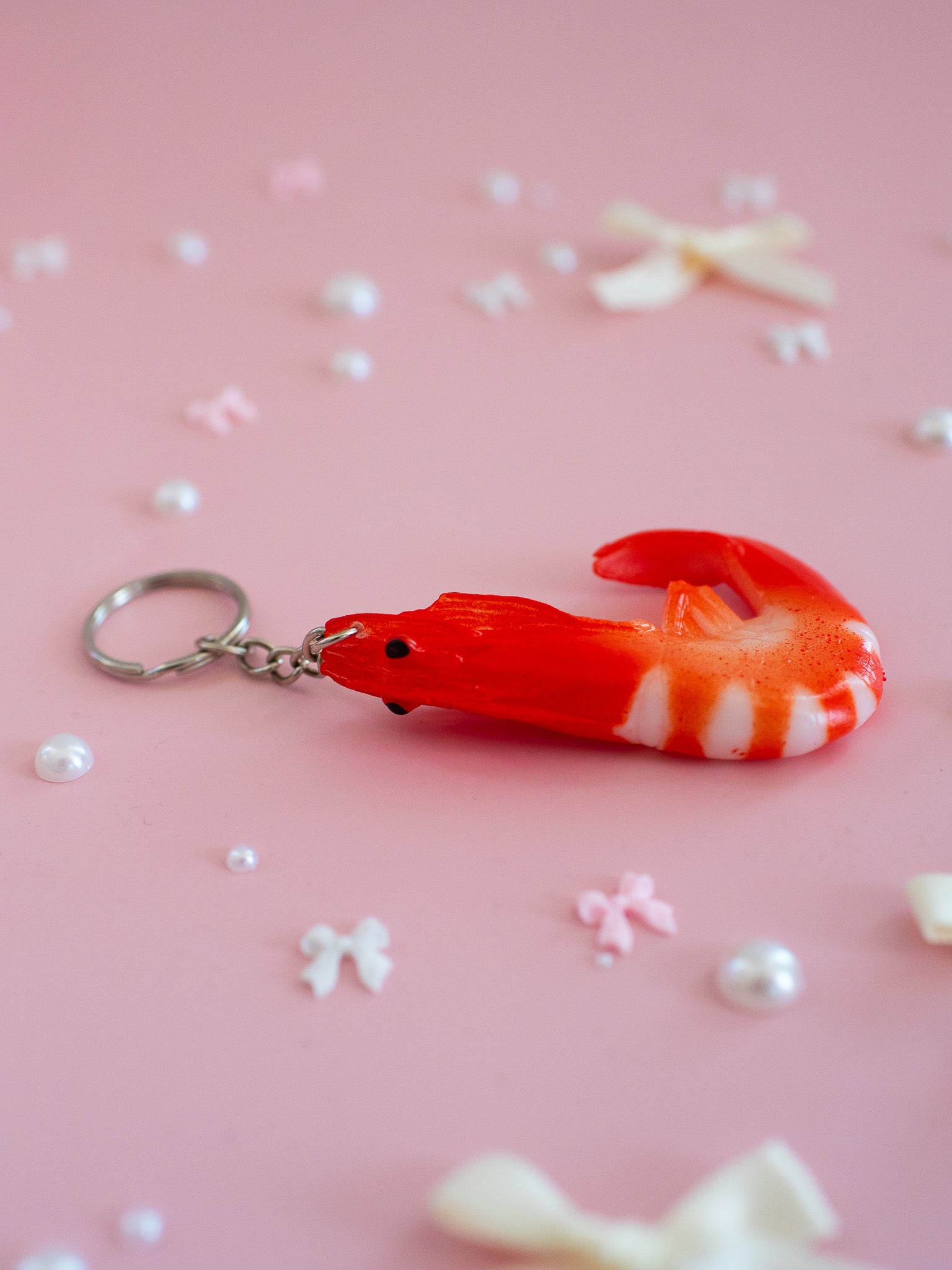 This keychain is shrimply the best! Whether you just want a super fun accessory or need the occasional reminder to fix your posture, this shrimp will do the trick! Comes with a silver chain and keyring.