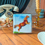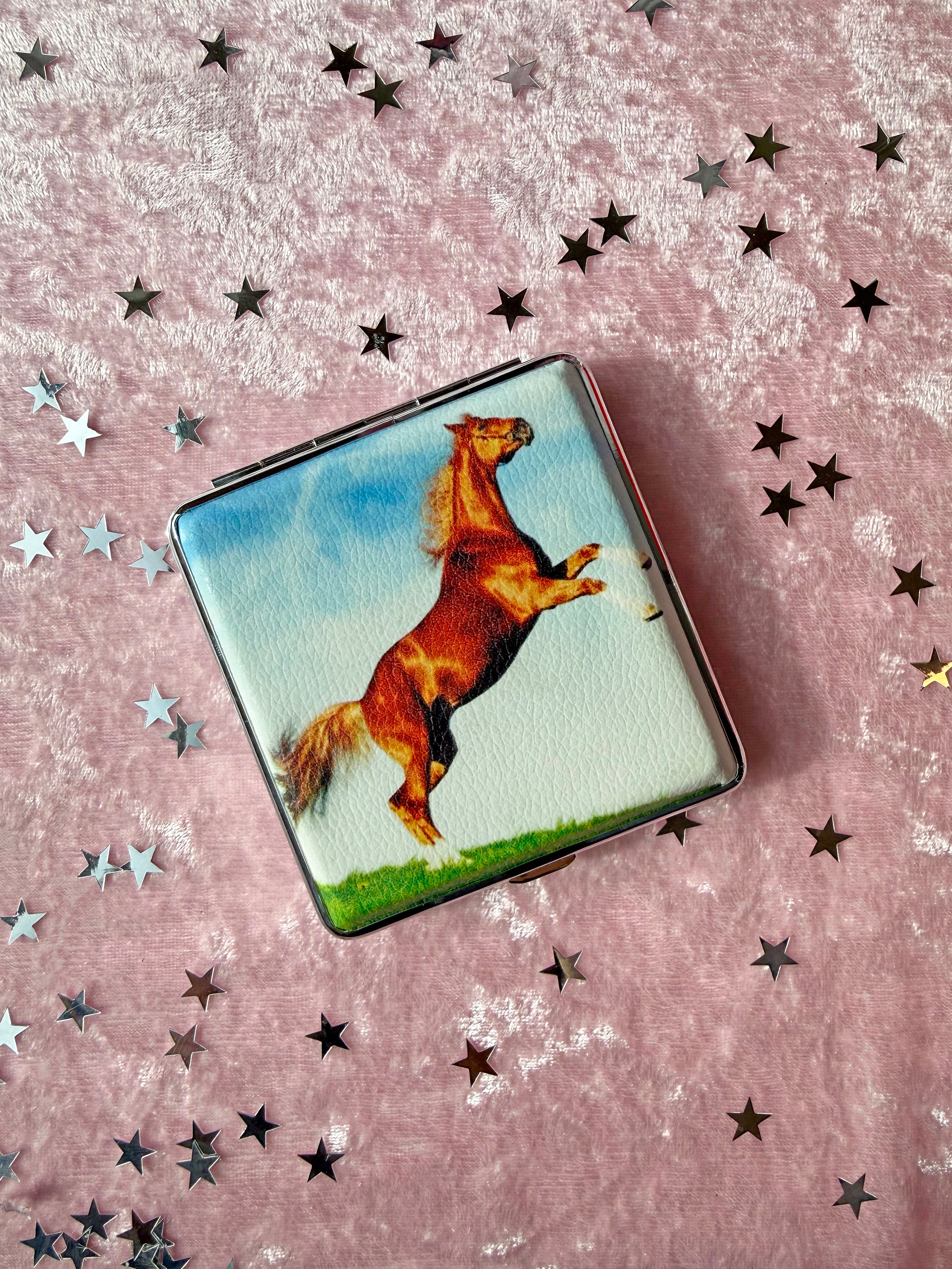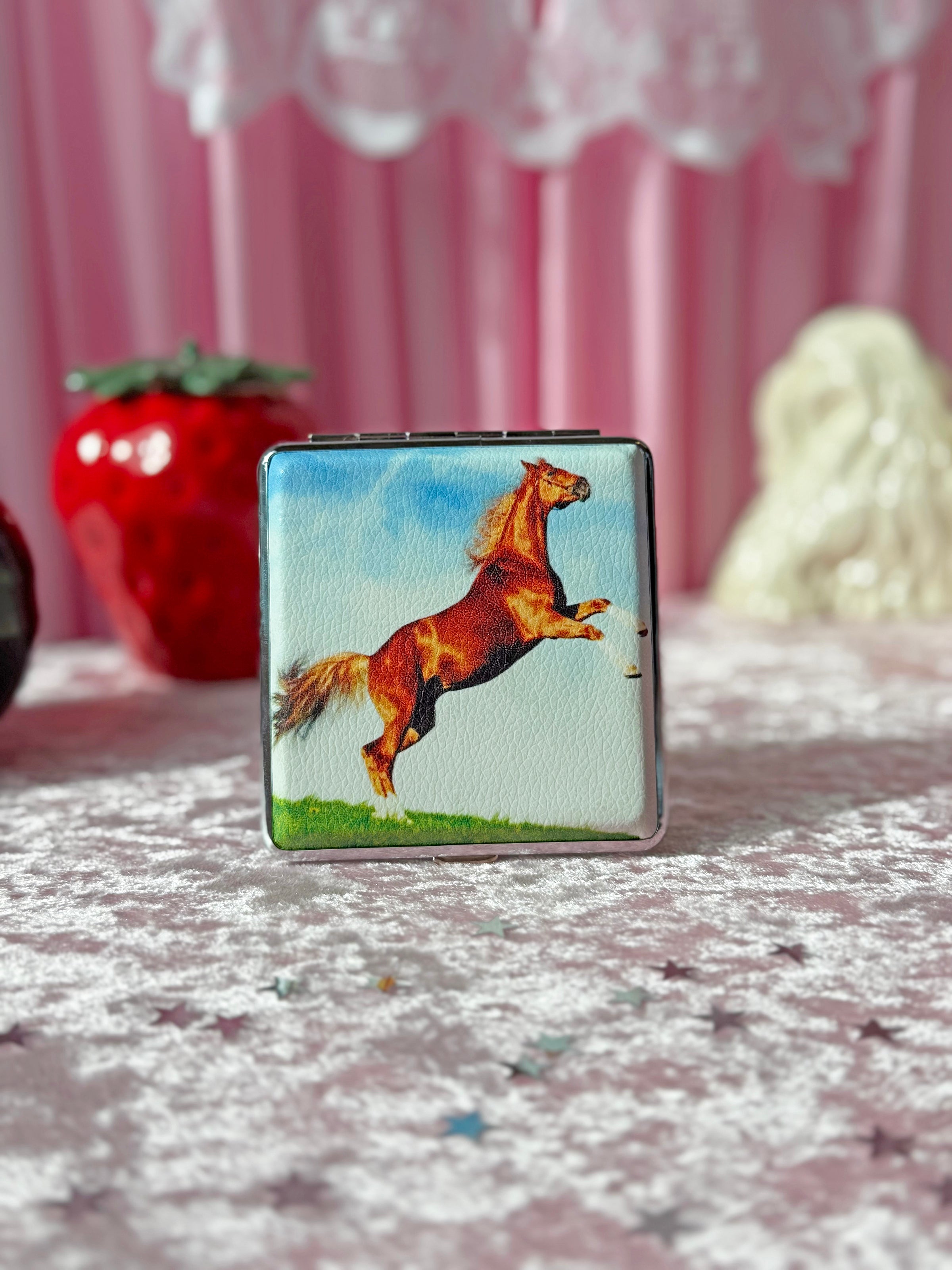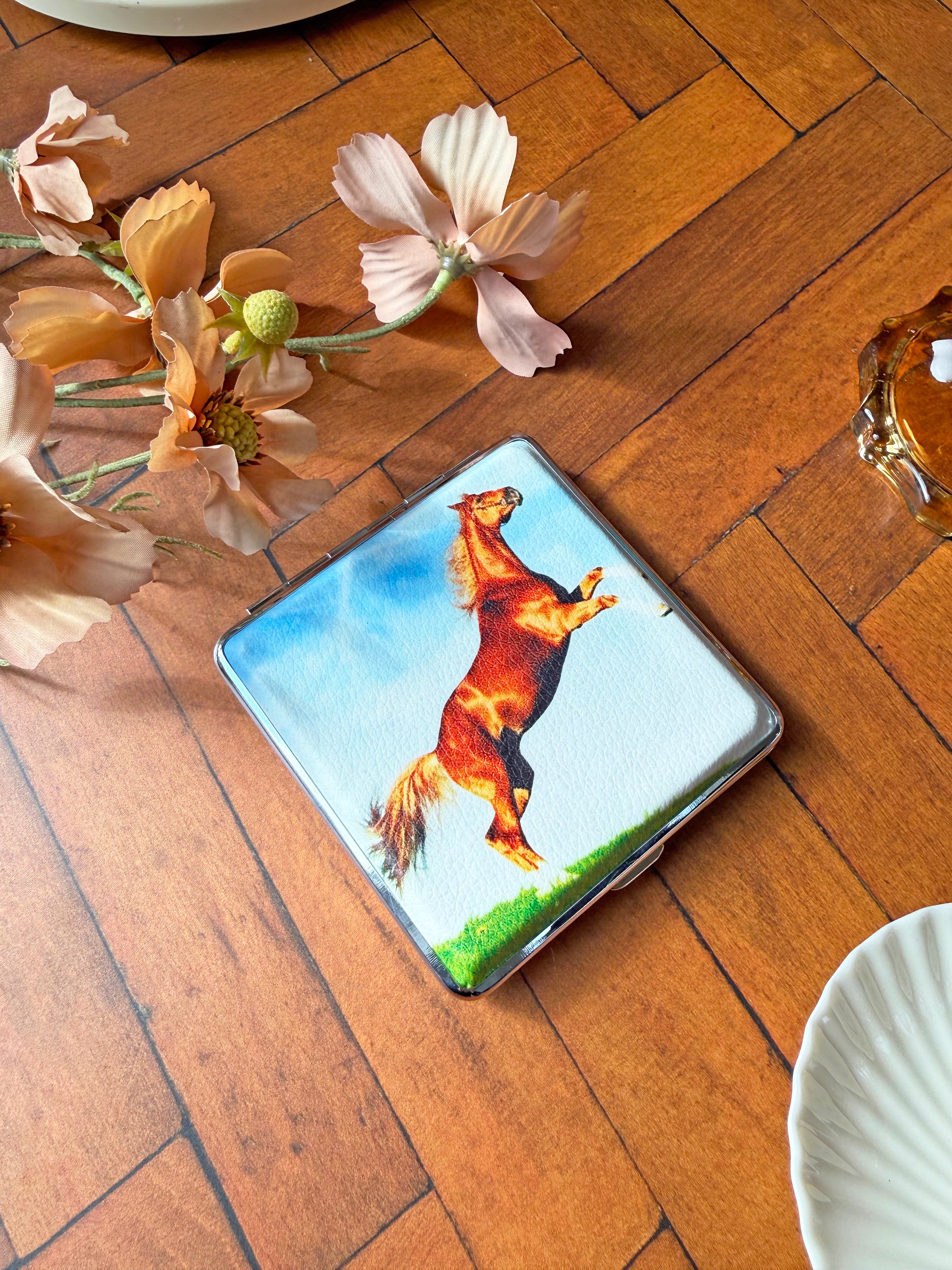 Features the sweetest image of a horse rearing up in an open field! Pulled straight out of our horse girl dreams!