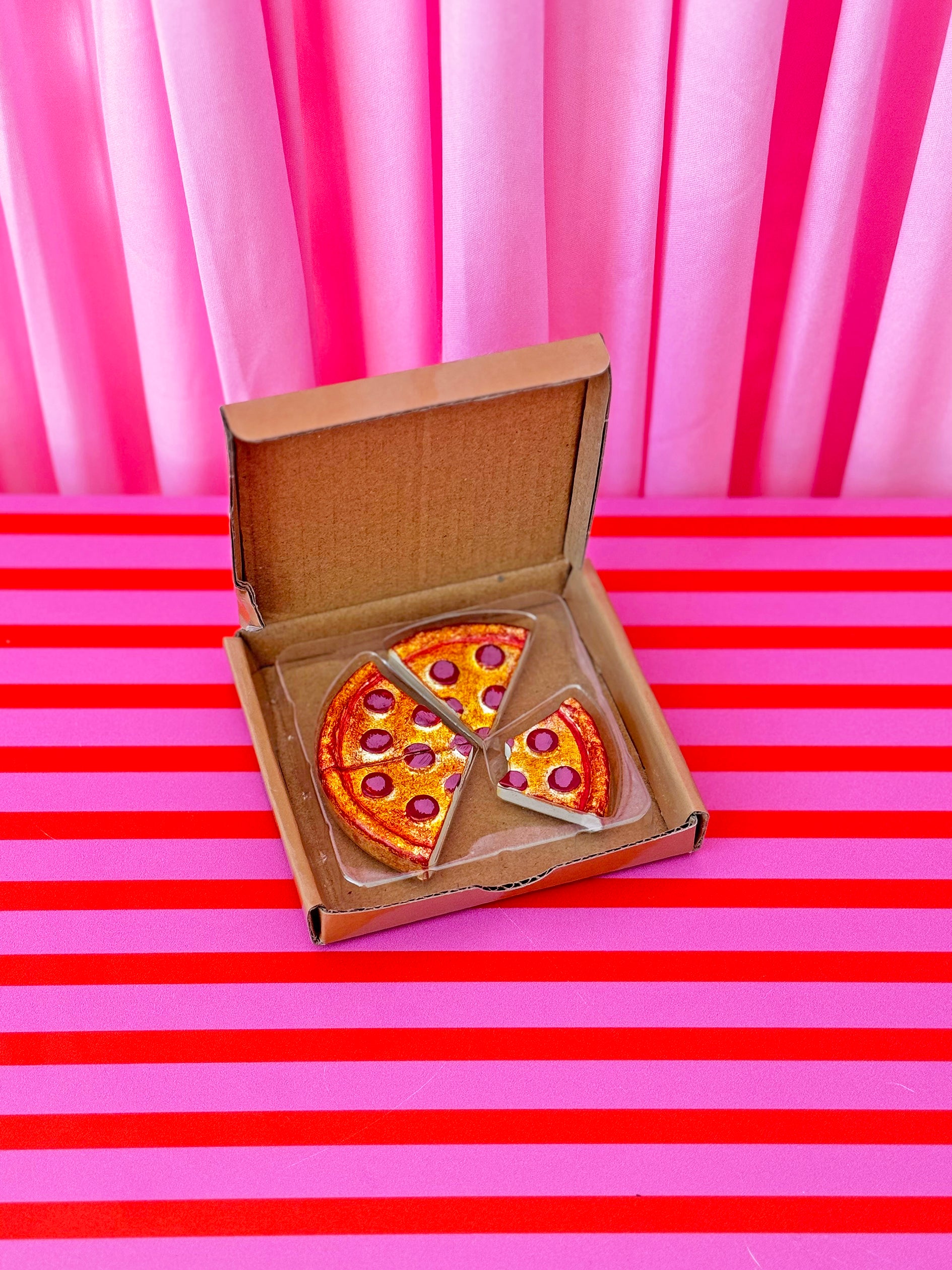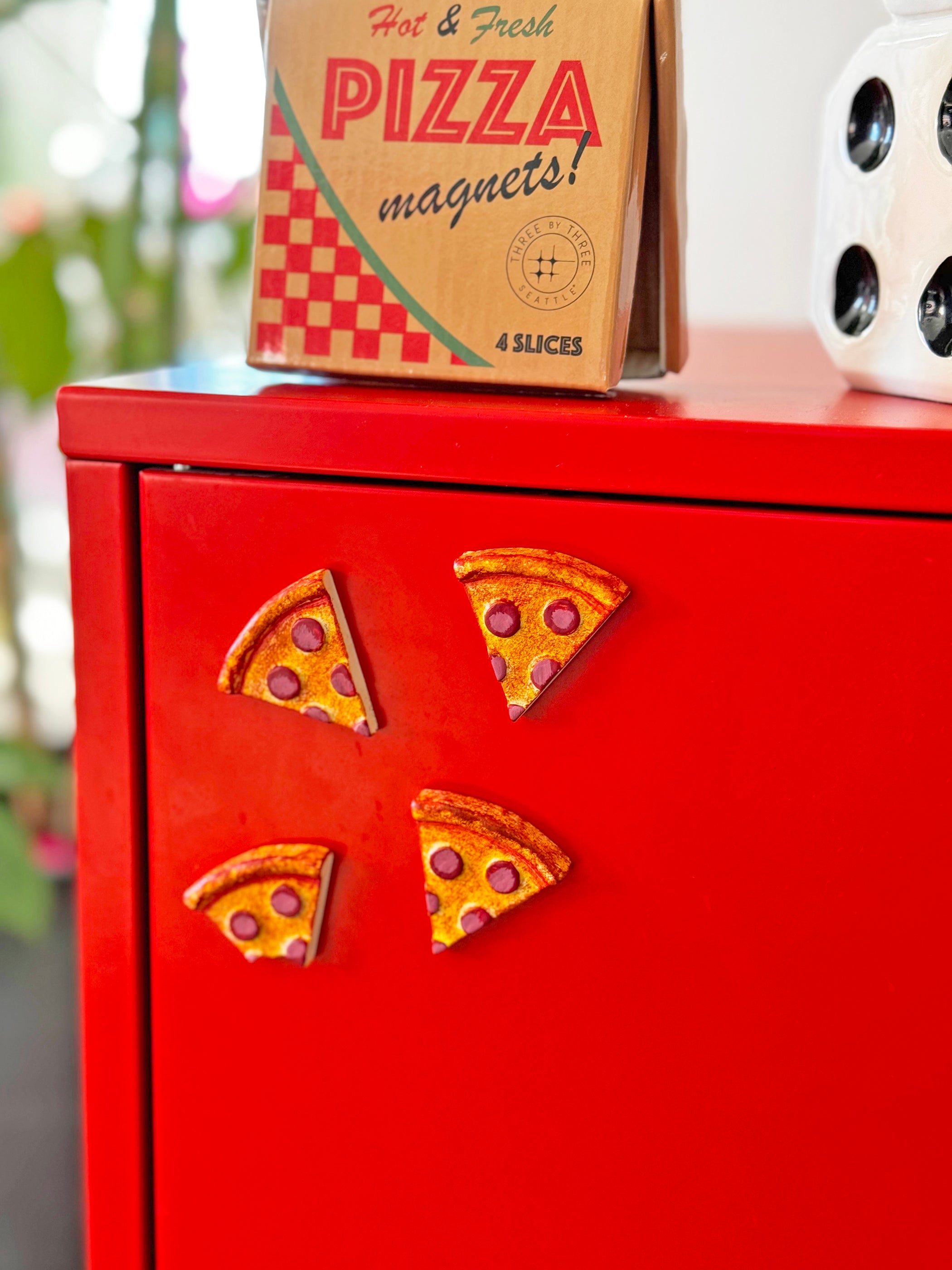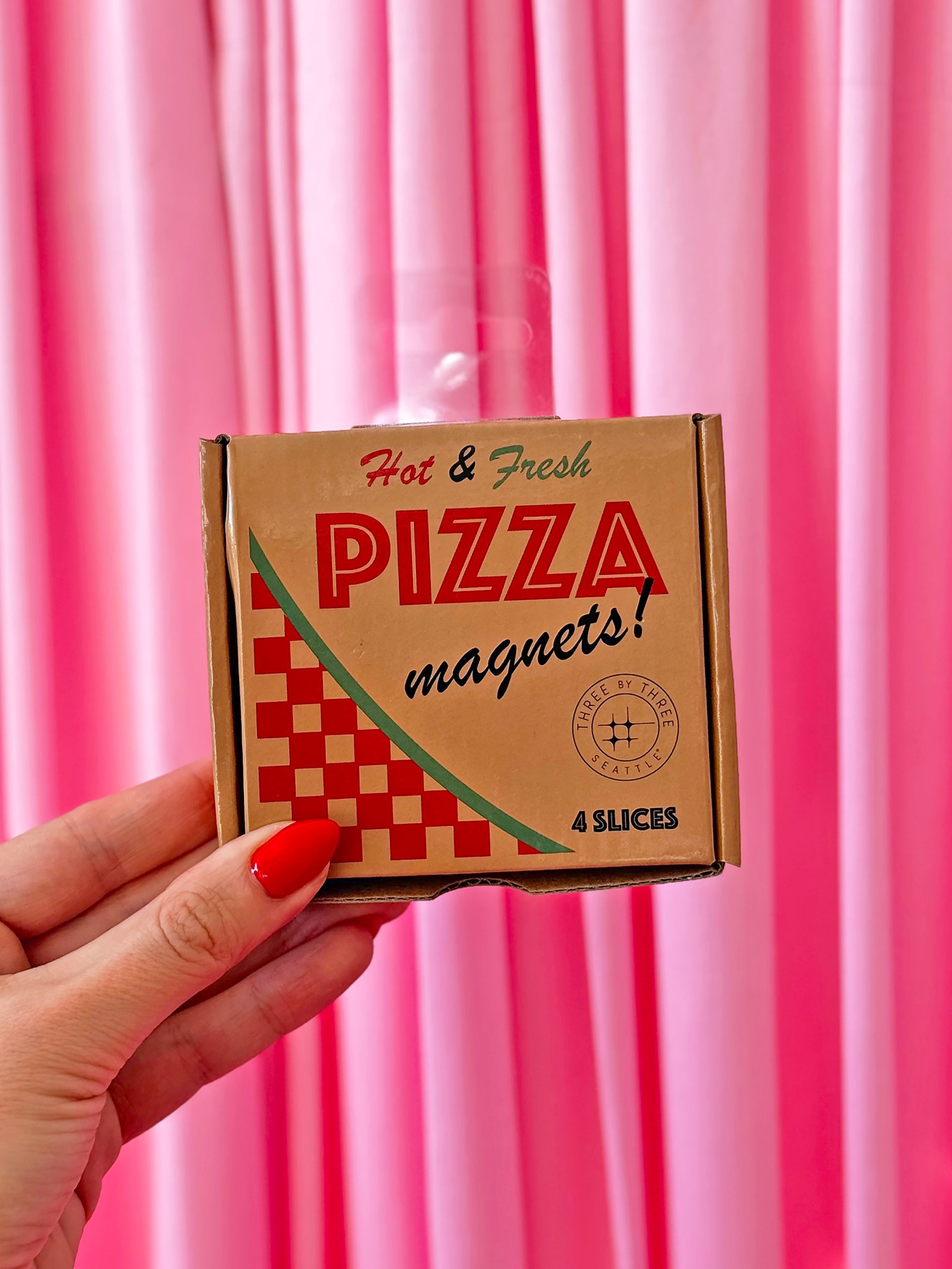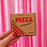 Jazz up your boring fridge with these kitschy pizza magnets, there's even a slice with a bite taken out! Perfect for fridges, lockers, calendar boards, etc! Plus who could resist the adorable mini pizza box packaging!