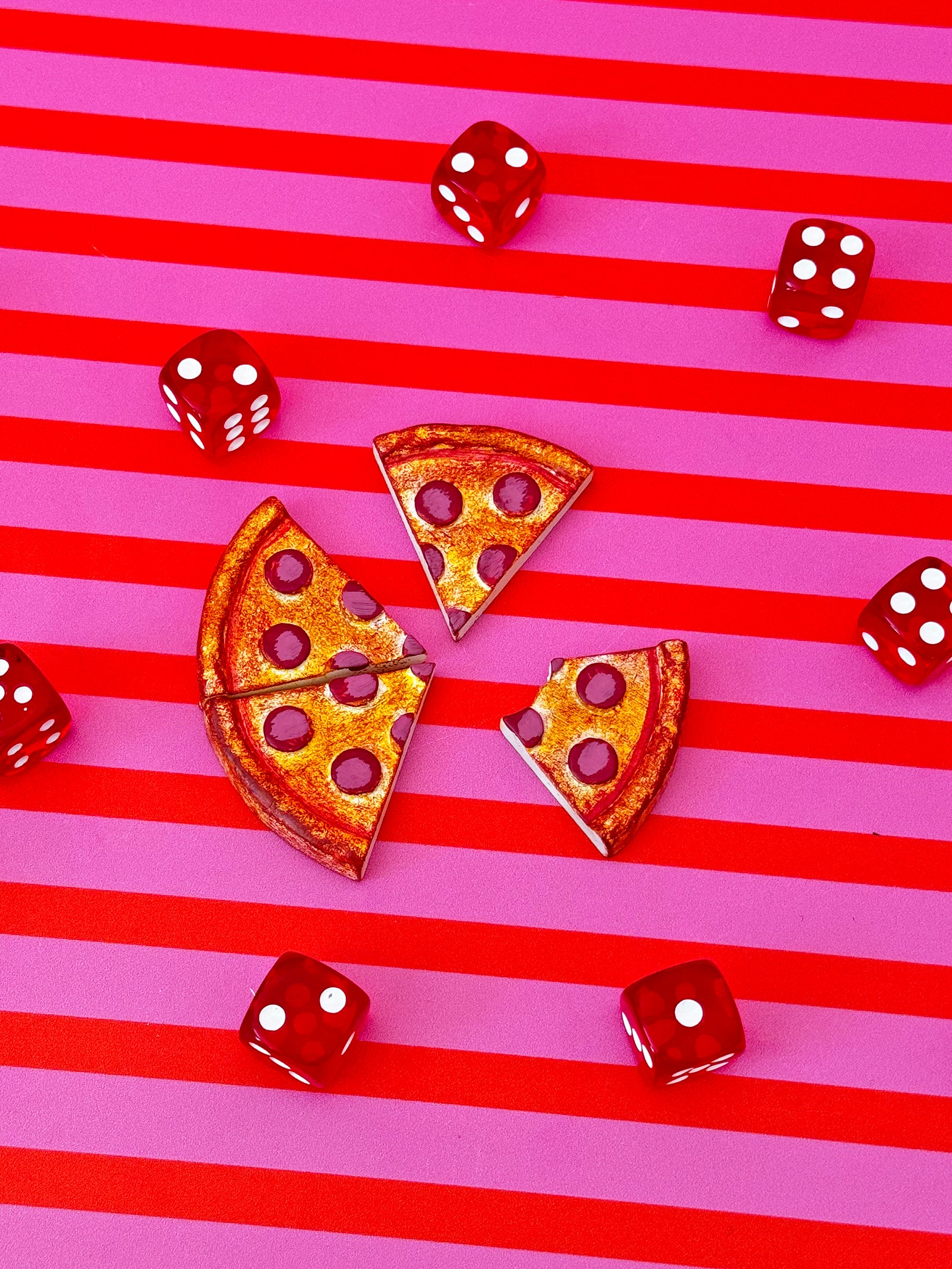 This set includes 4 pizza slice magnets. These are extra strength magnets so you can be sure they'll stay put! Hand painted so slight variations may occur.Β