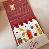 This matchbook features everyone's favorite cocktail- an old fashioned! The art is done by meeeee! The inside of the matchbook has the recipe for the cocktail and each match features a different ingredient of that cocktail cause we cute like that.