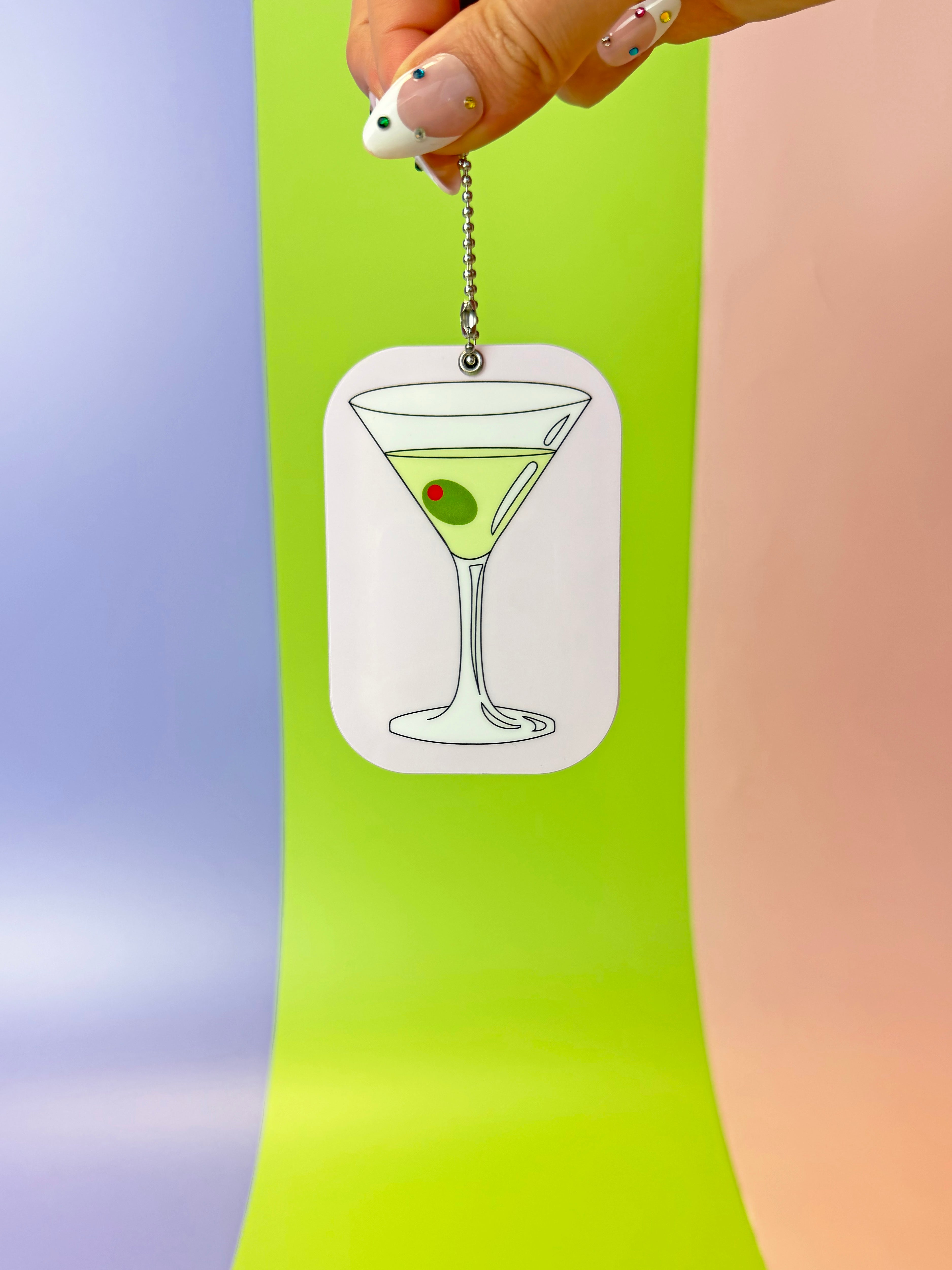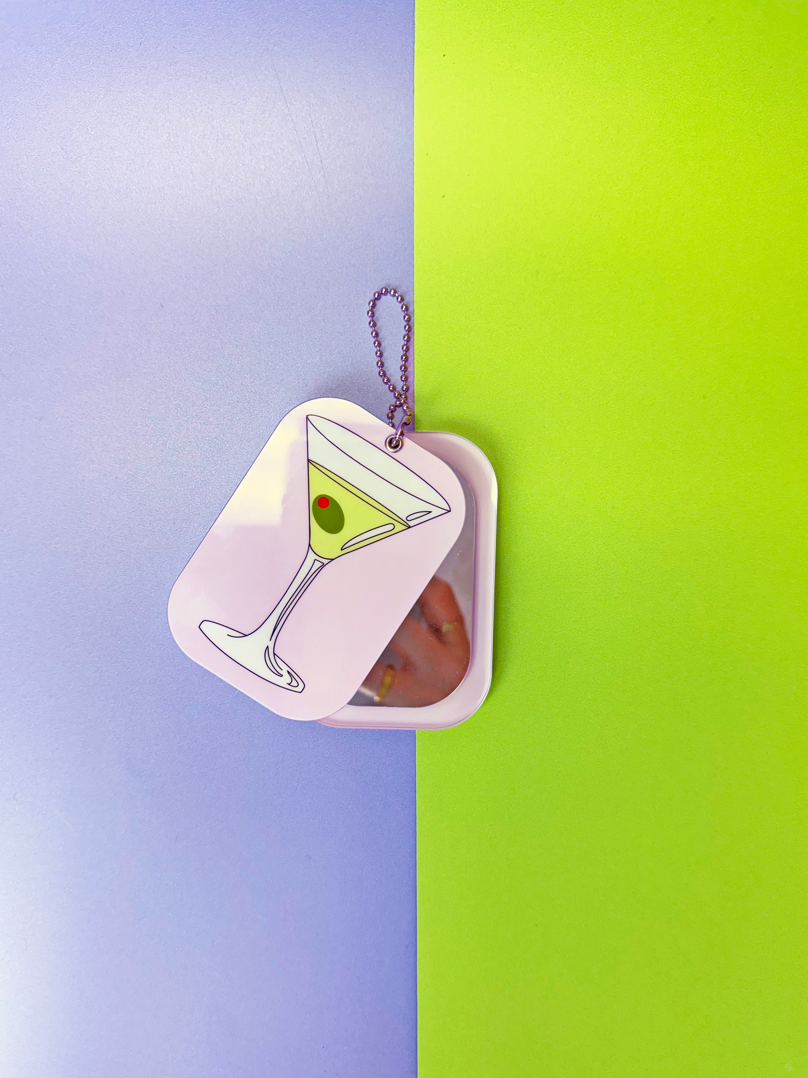 This mirror features a martini on one side and olives on the other.