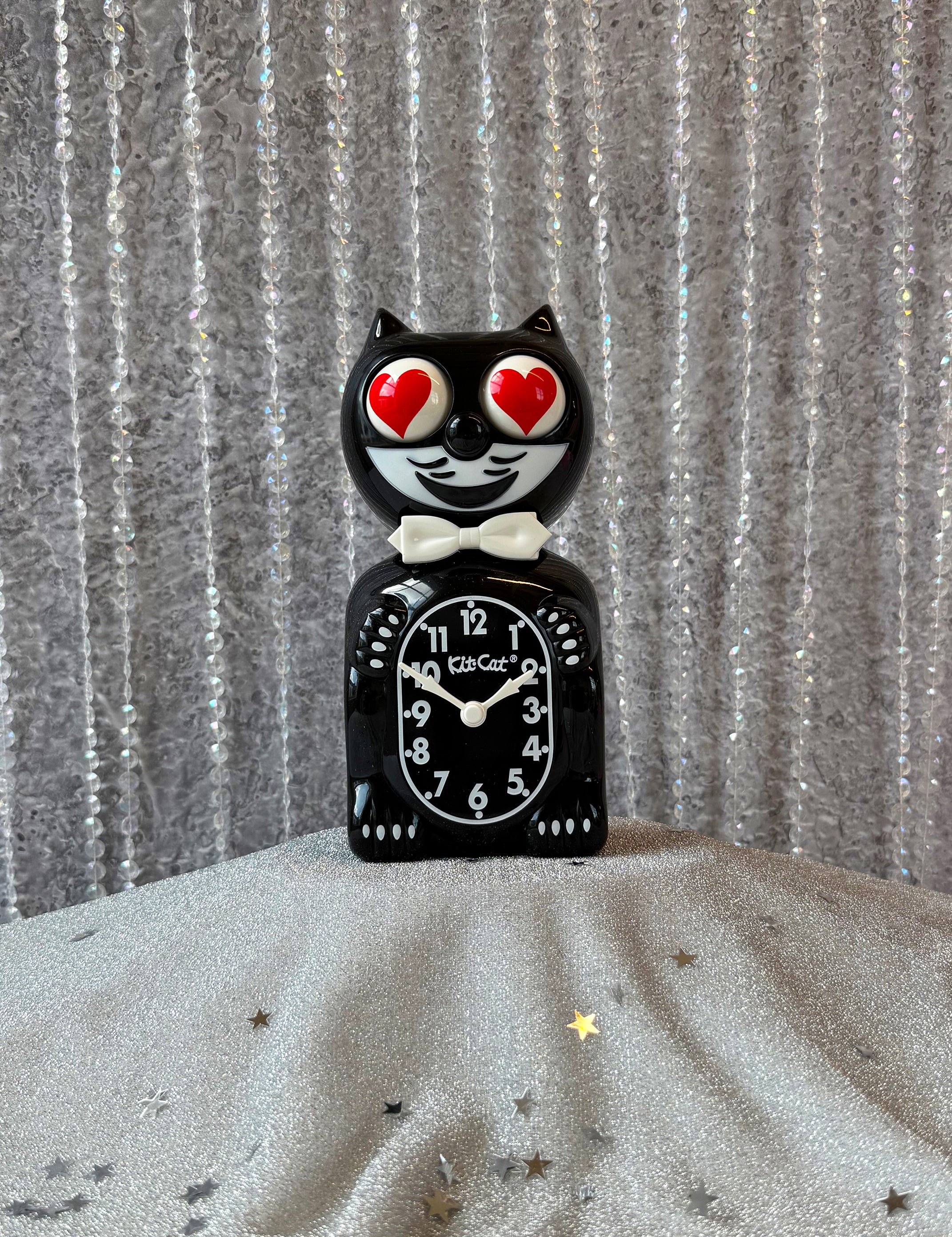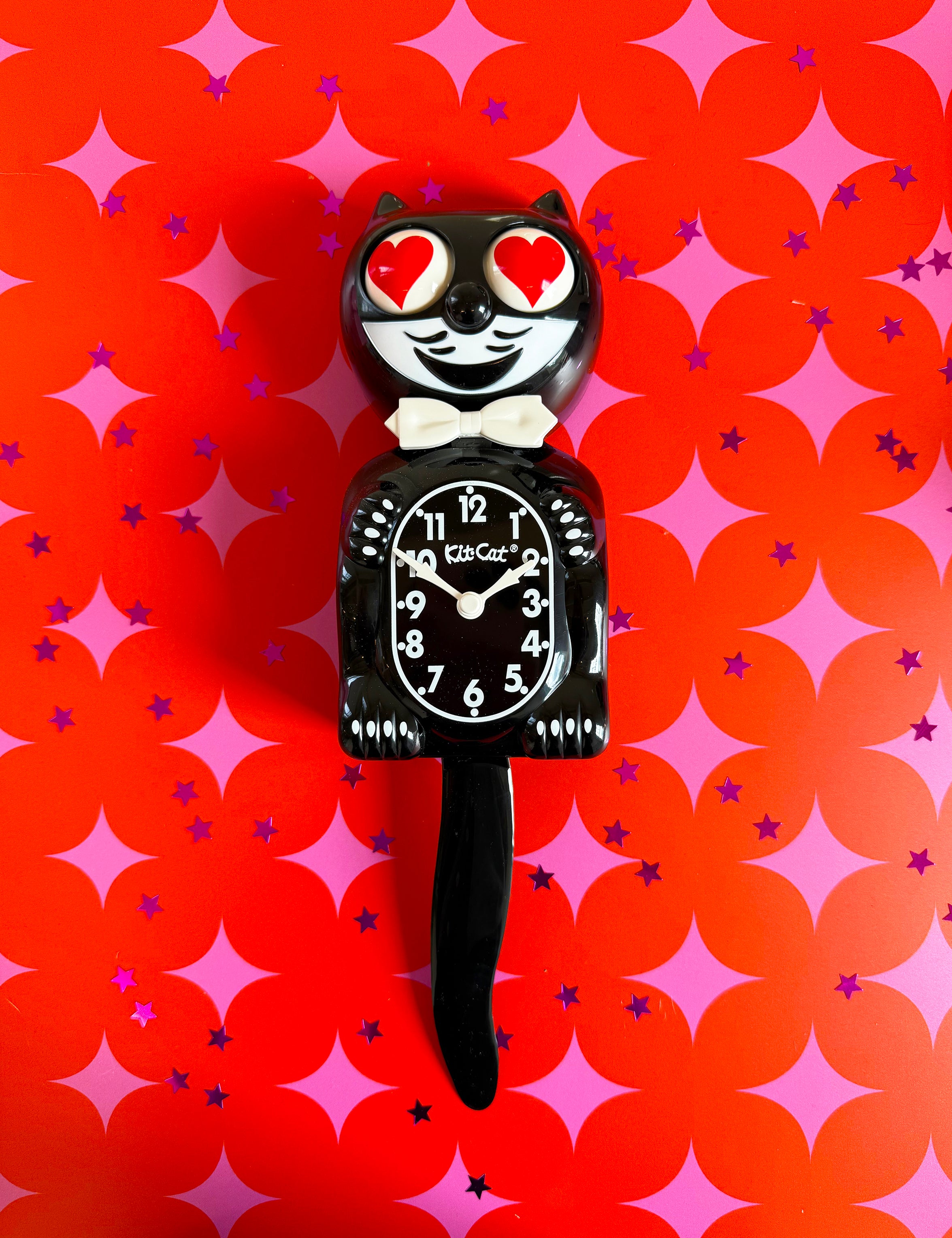 Pink Satin Kit-Cat Klock - Heart Eyes
