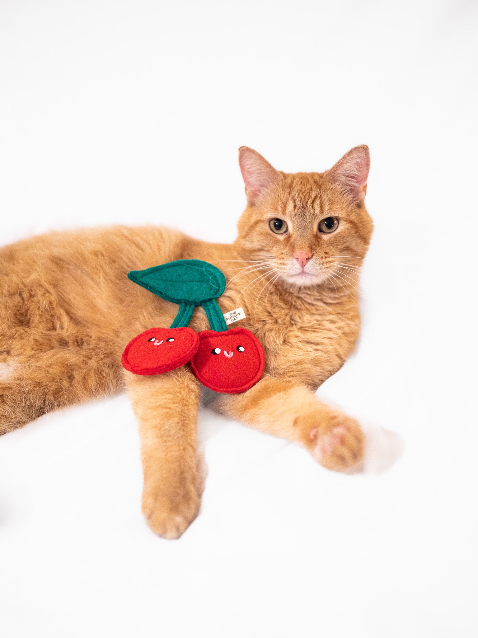 This catnip toy is cherry cuuuuute! Made with super potent catnip that is sure to keep both you and your cat entertained.