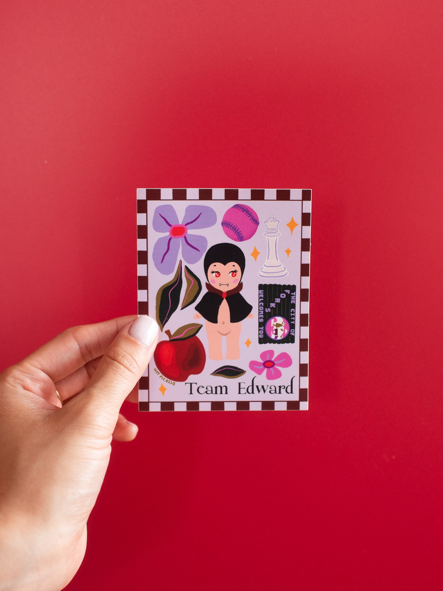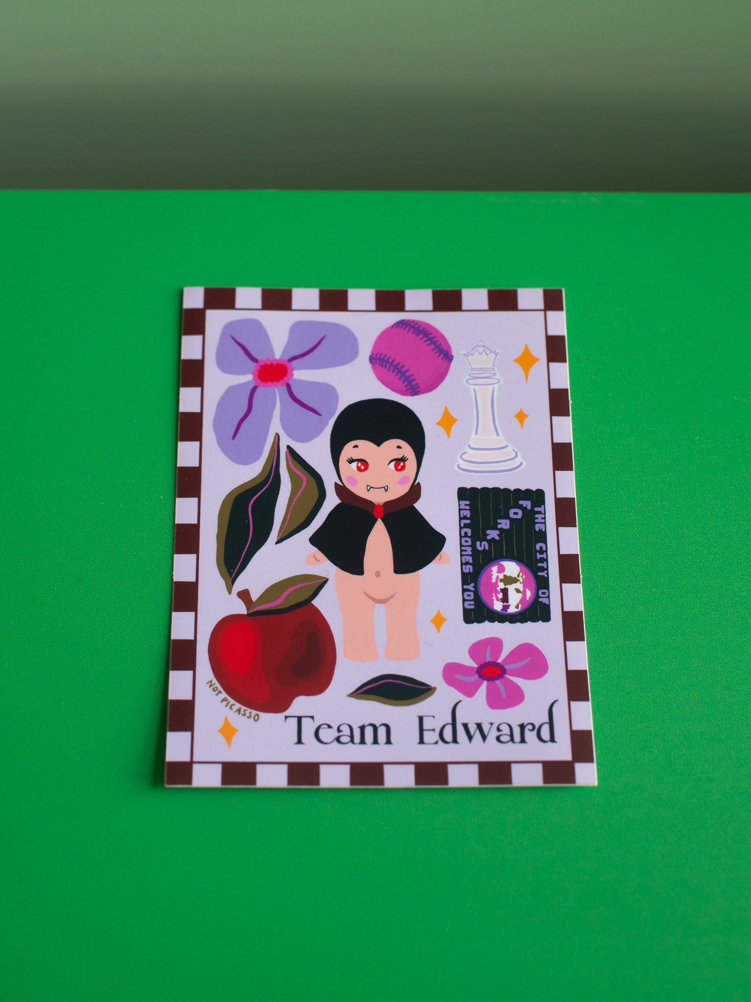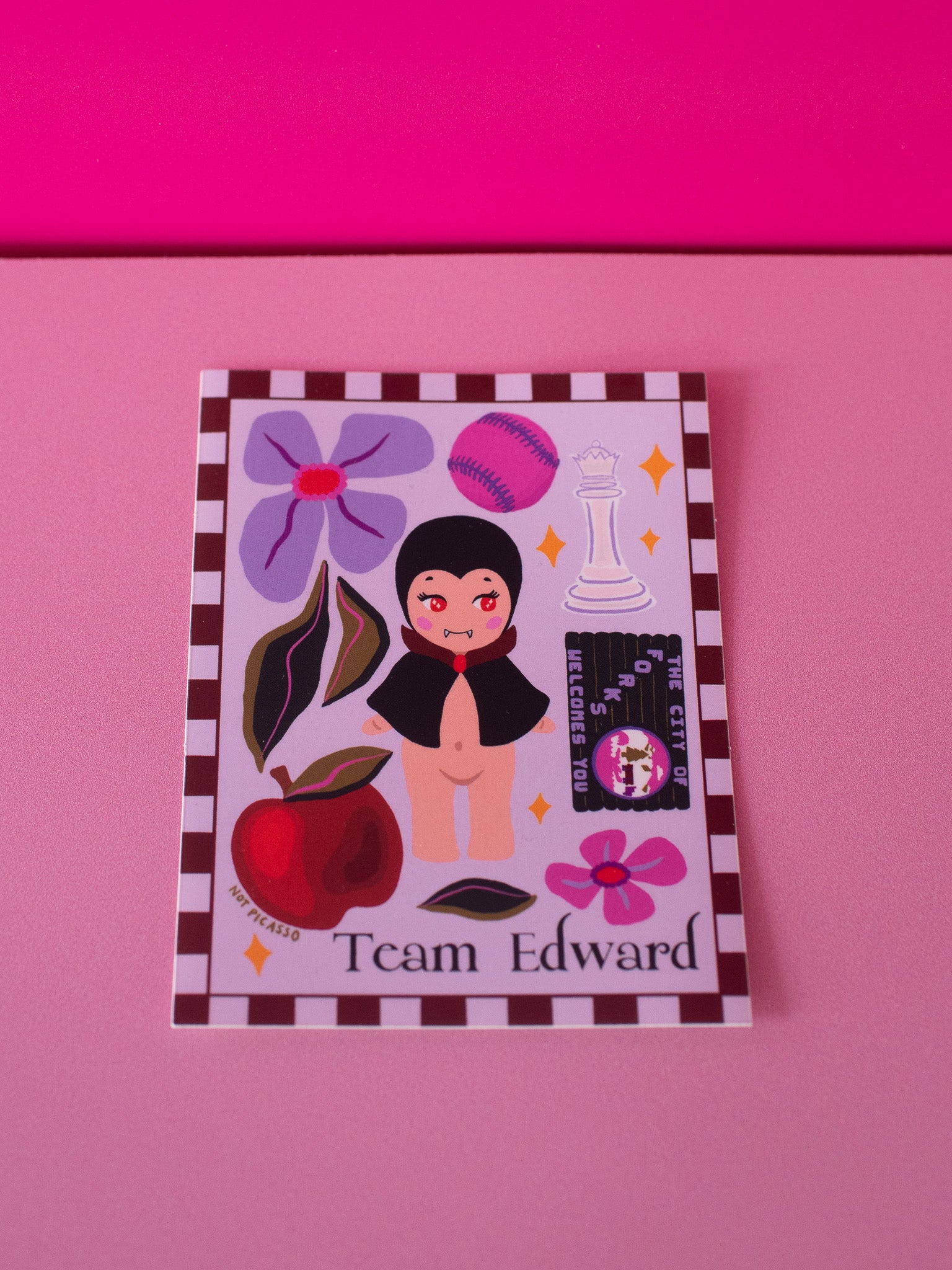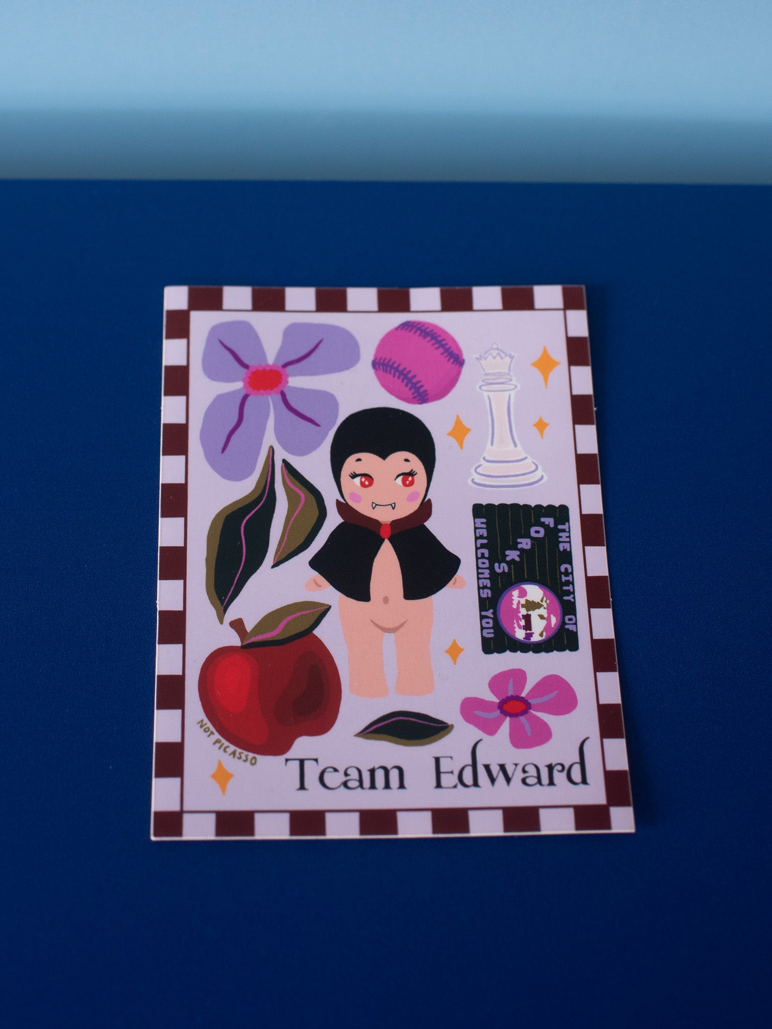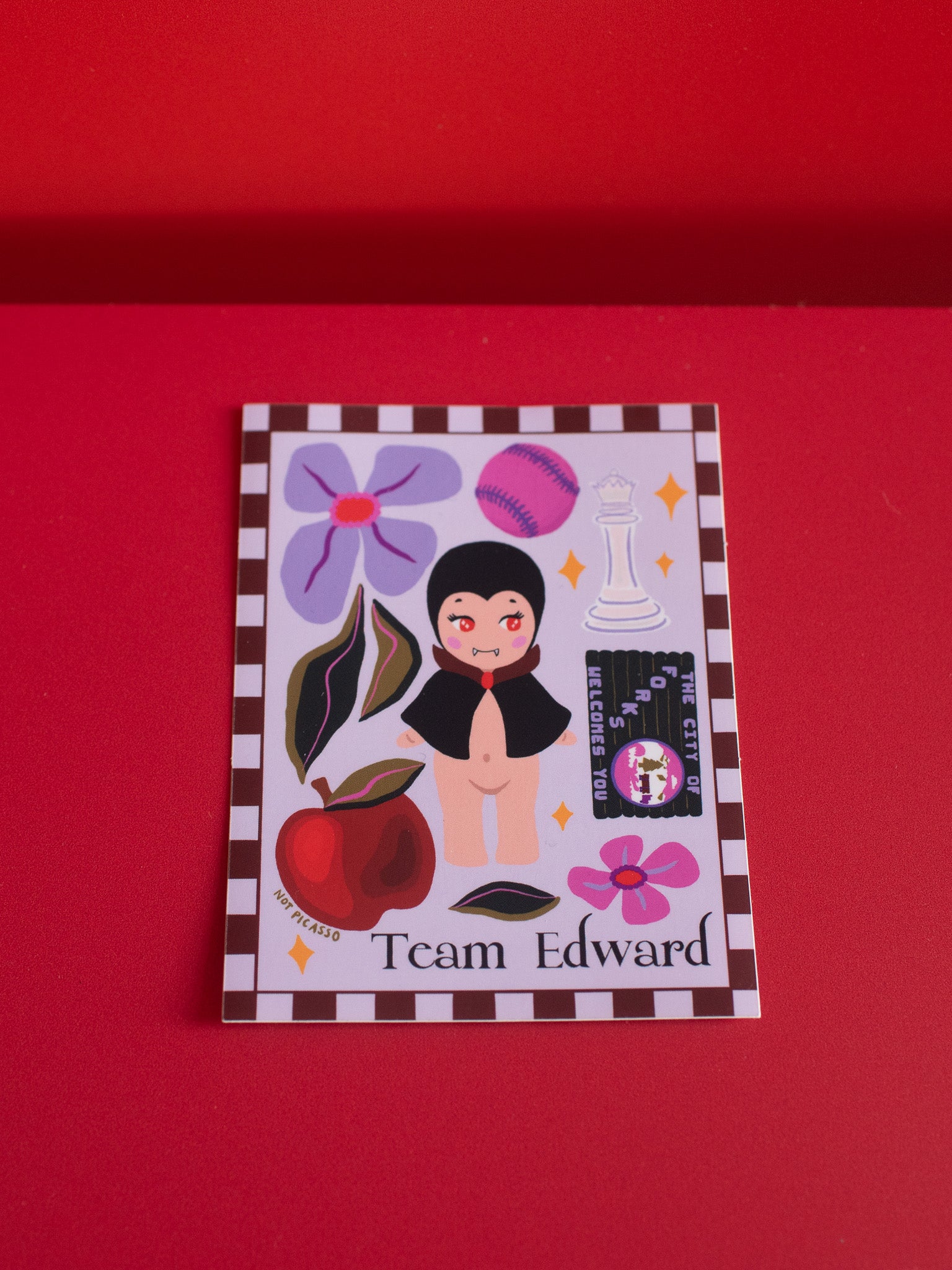 This sticker reads "Team Edward" and features a cutie little vampire surrounded by references to one of the greatest movies of all time!