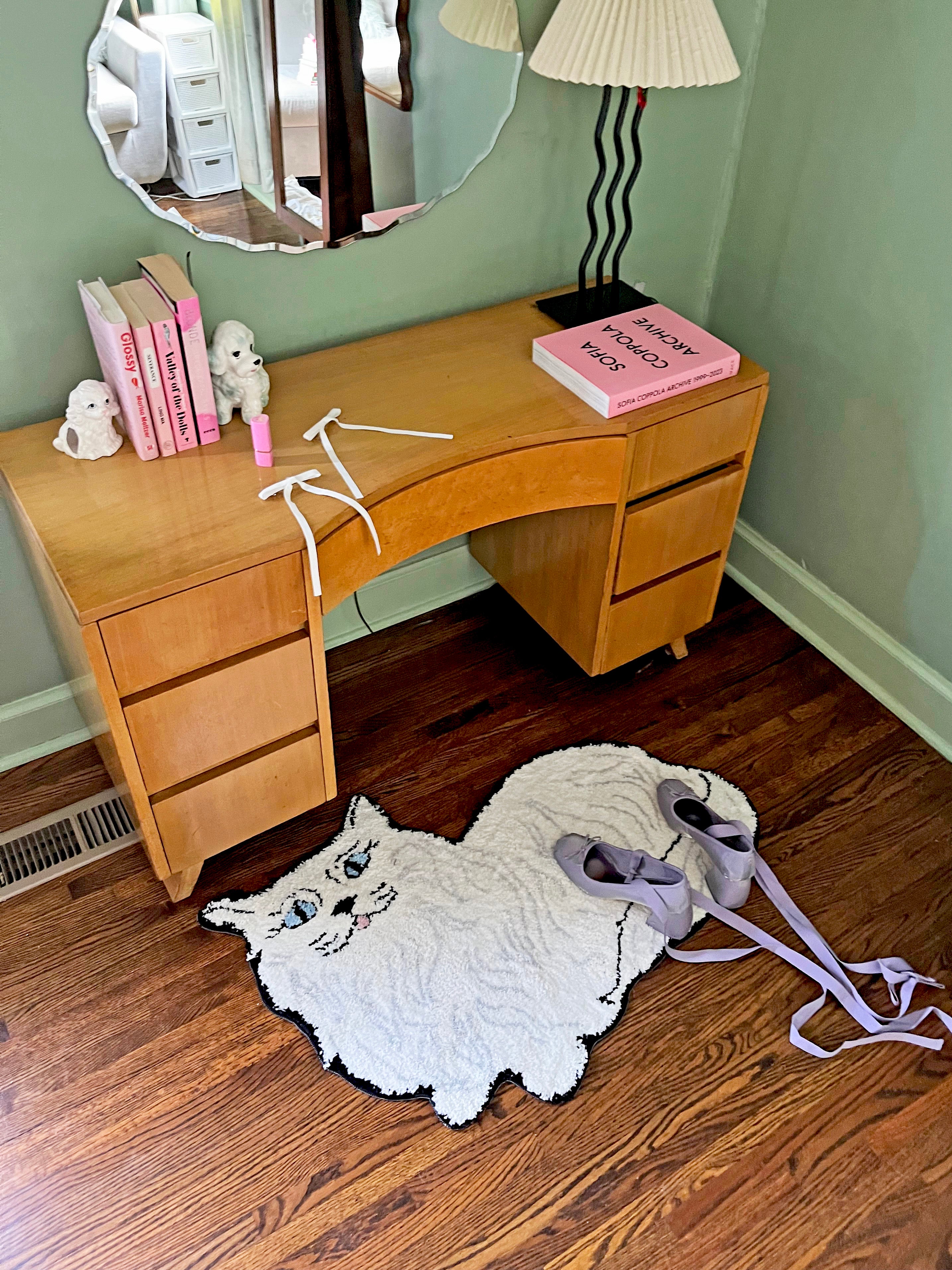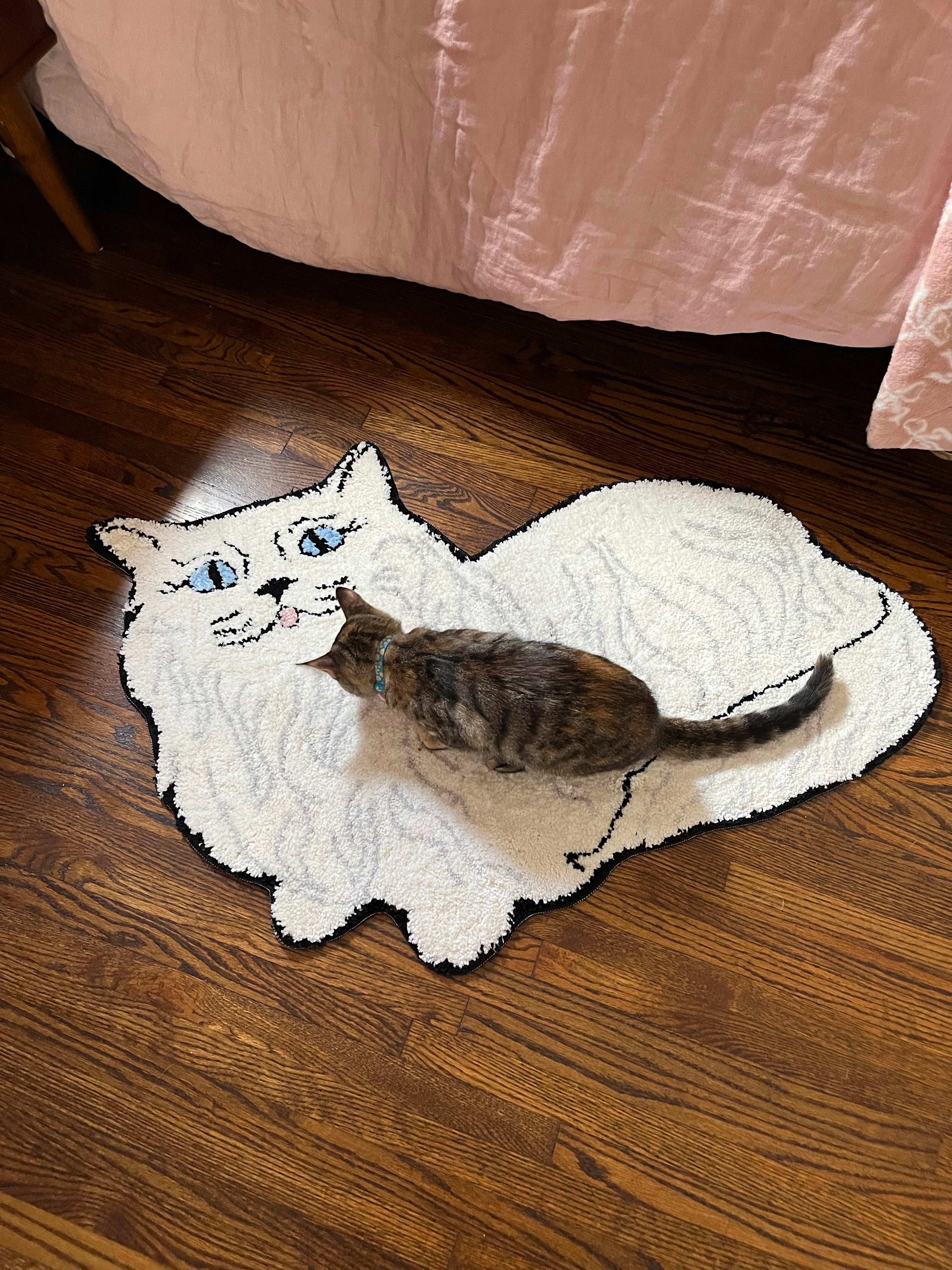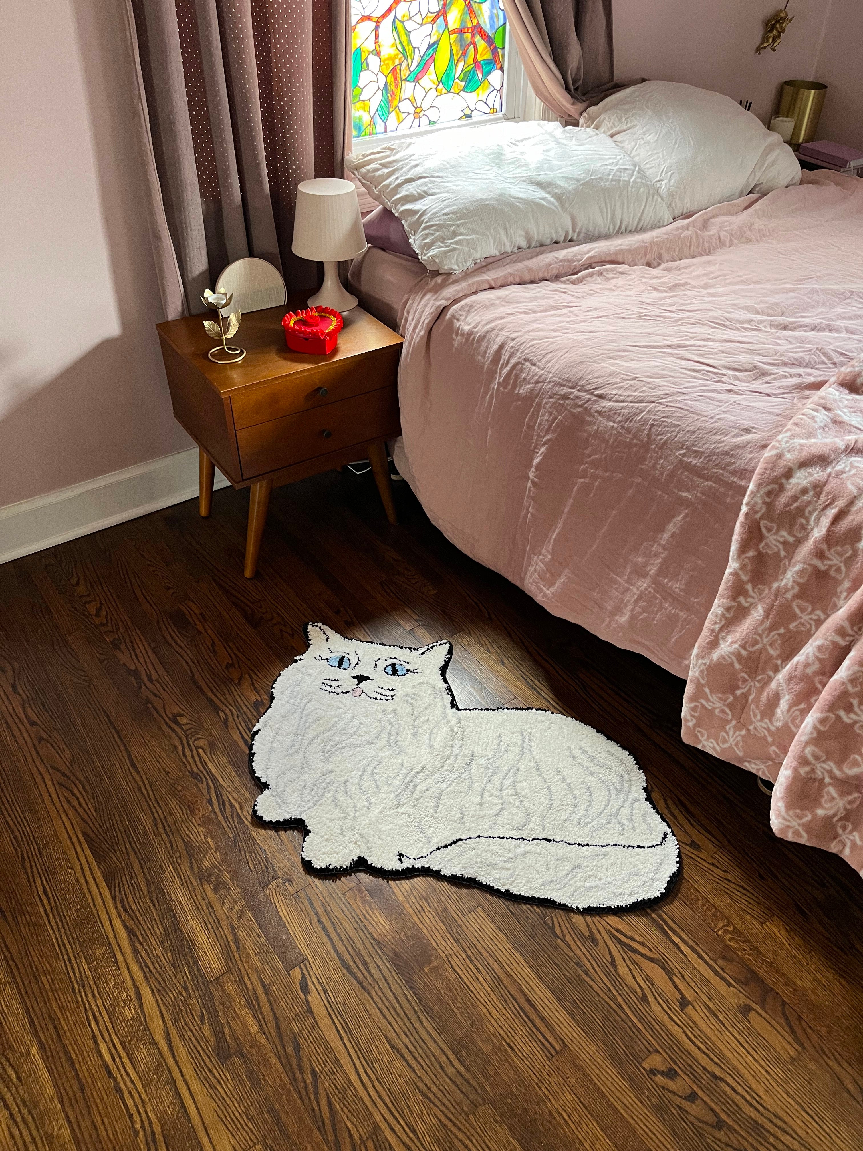 Picked this rug up at an antique mall & i knew i had to have it. It goes so well with my other cat decor. I didn’t expect it to be as soft as it is too!
