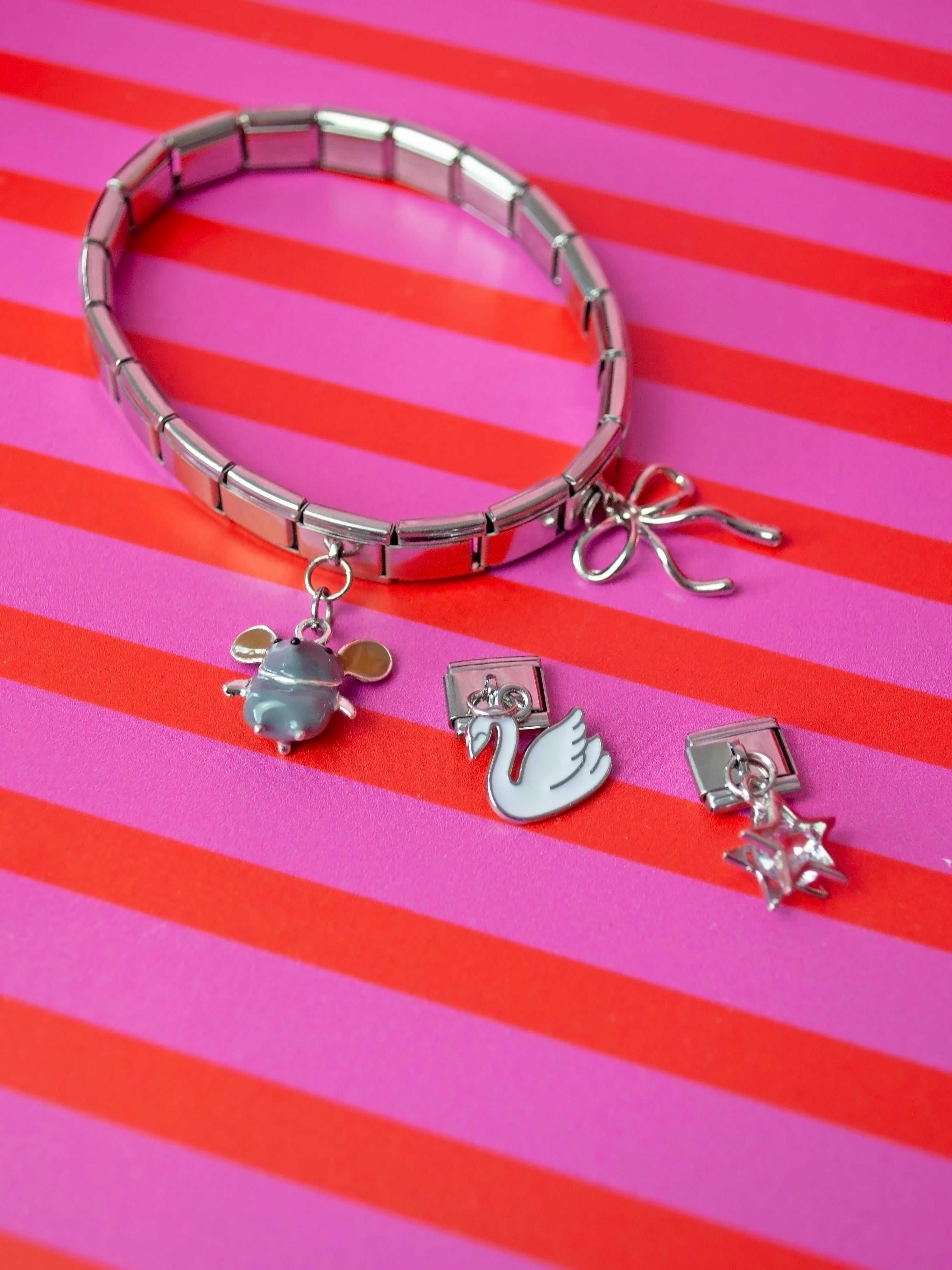 The iconic Italian Charm Bracelet, curated into the perfect Swan Lake theme by us <3 charms are extremely limited so don't wait to get one of these sets!!