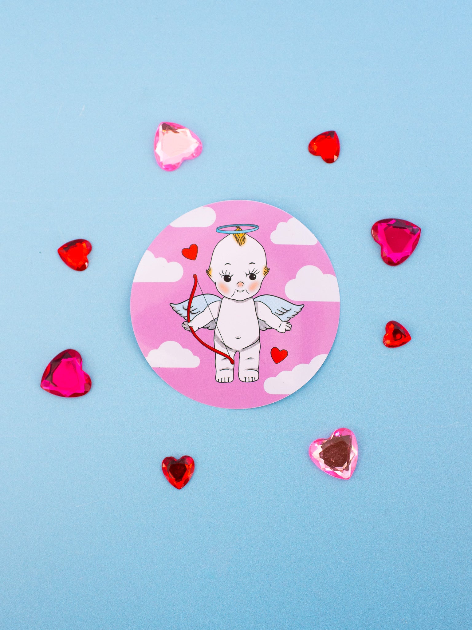 I'm just a lil baby angel! This sticker features an angel kewpie with art made by us <3
