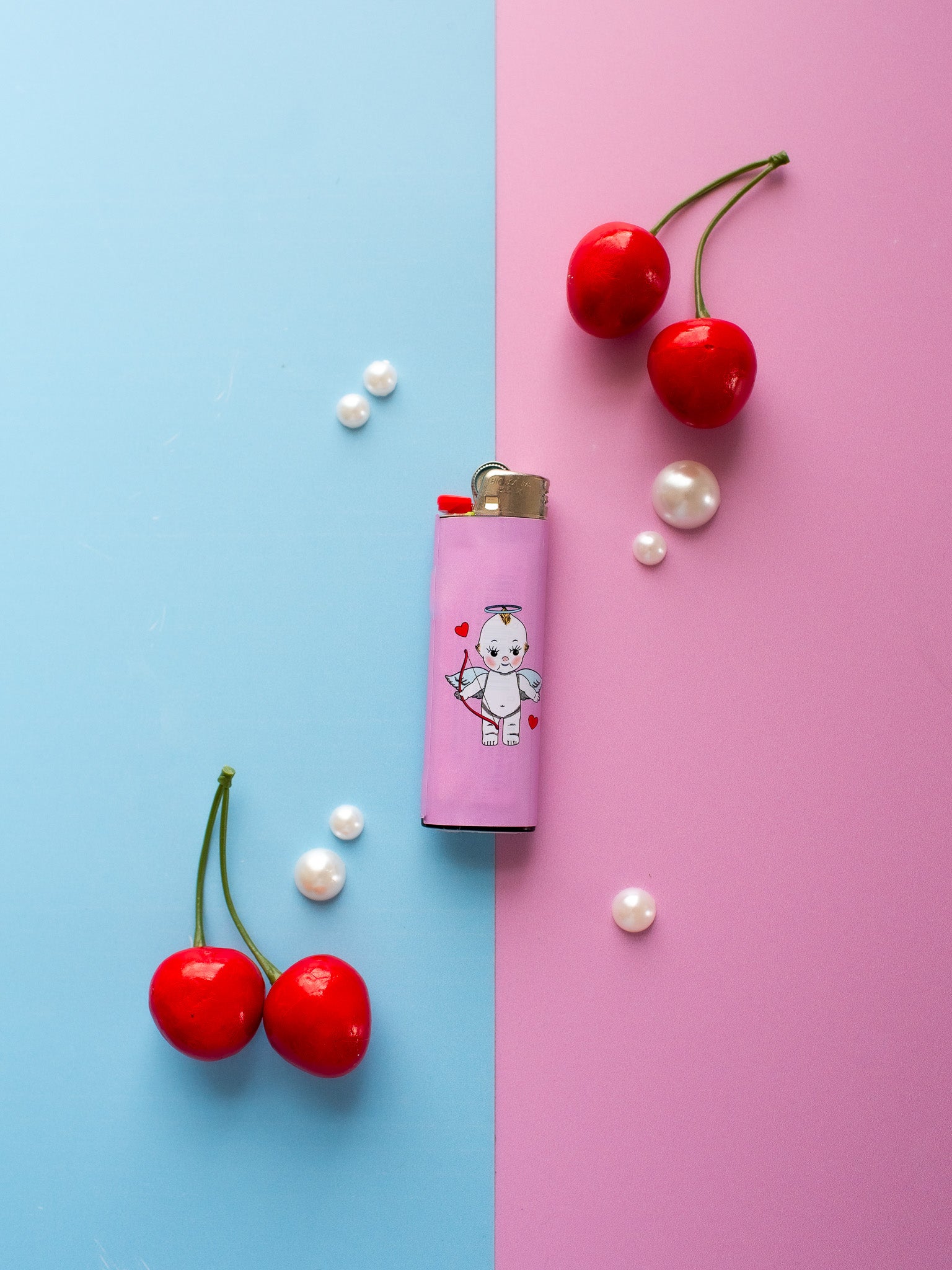 This lighter wrap features an angel kewpie on one side and a devil on the other.
